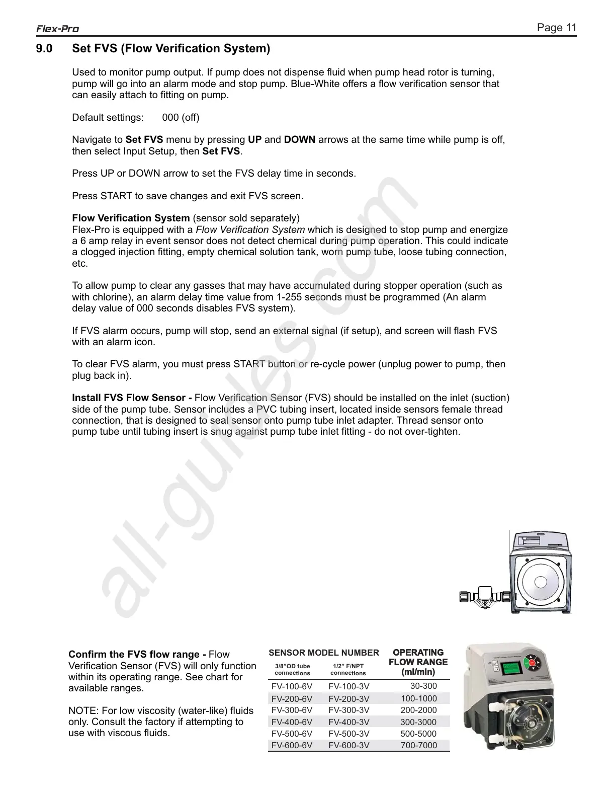 Install FVS Flow Sensor - Flow Verification Sensor (FVS) should be installed on the inlet (suction)