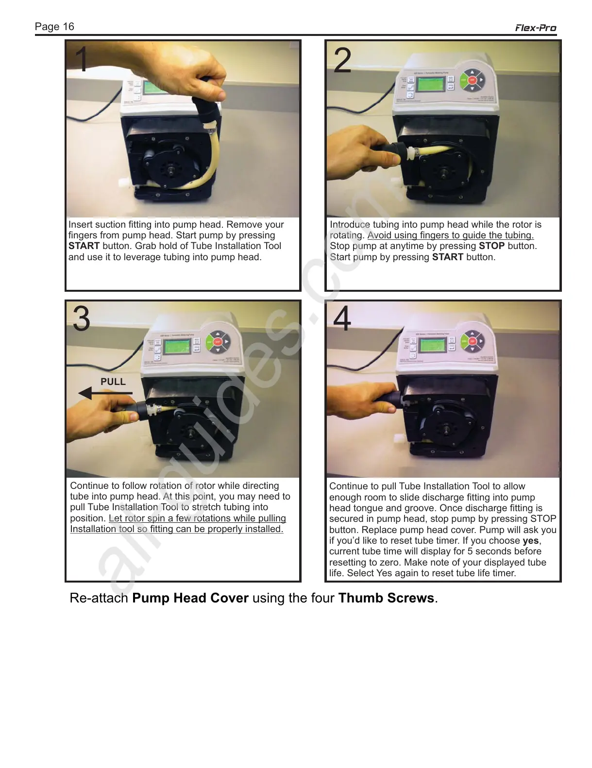 Re-attach Pump Head Cover using the four Thumb Screws.
