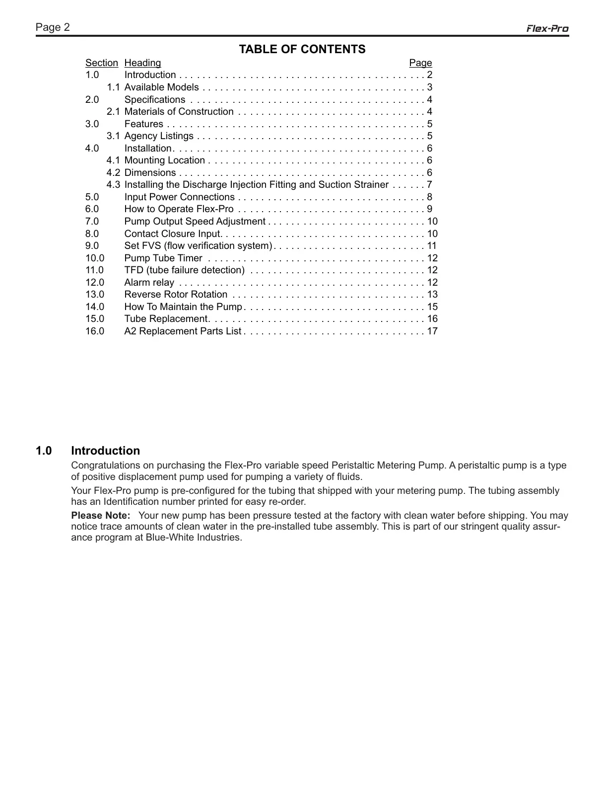 Congratulations on purchasing the Flex-Pro variable speed Peristaltic Metering Pump. A peristaltic pump is a type