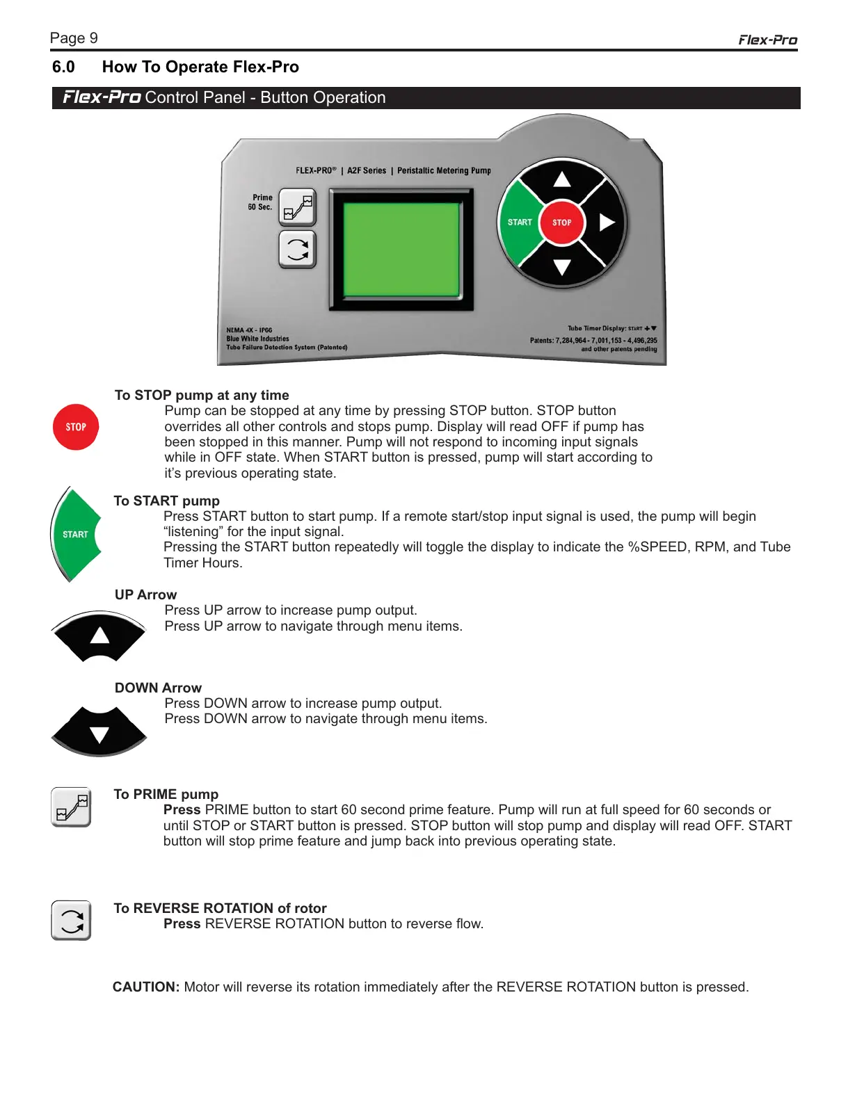Press REVERSE ROTATION button to reverse flow.