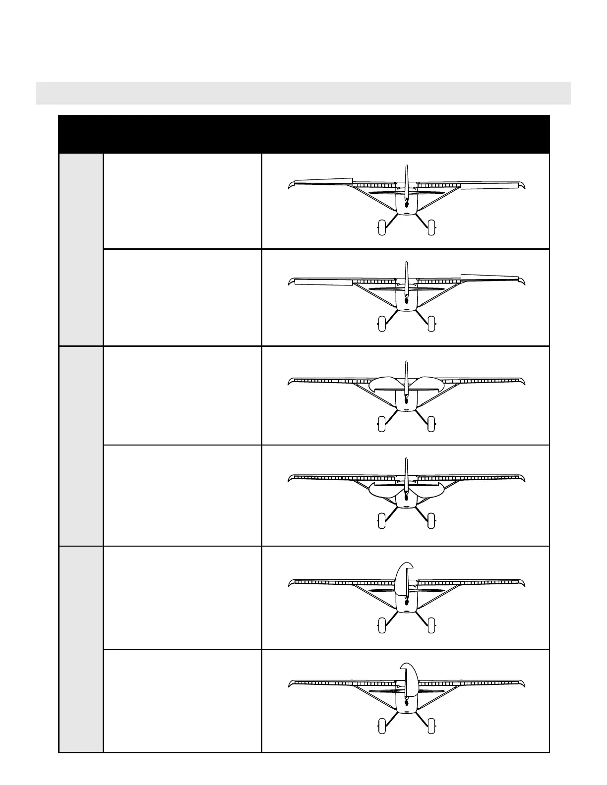 Refer to the chart below to determine the proper control surface direc�ons. If controls are reversed, DO NOT REVERSE CONTROLS IN TRANSMITTER