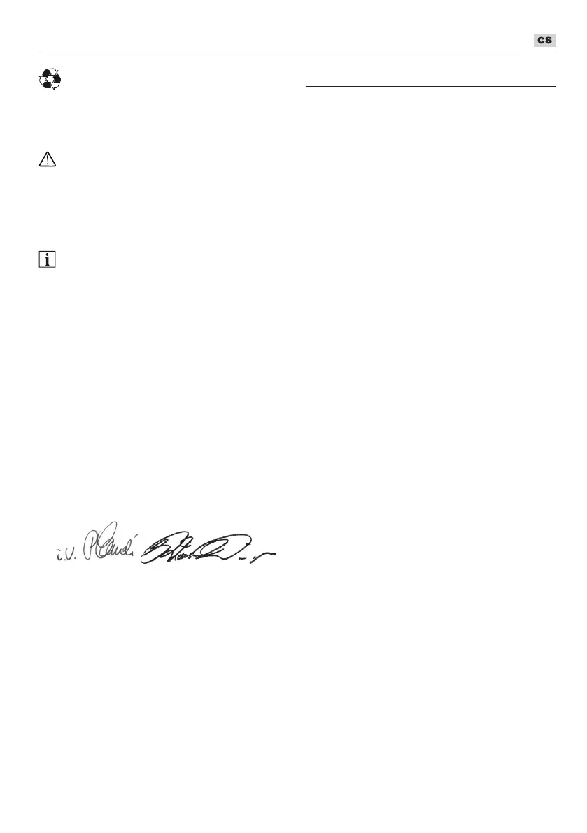 prostředí. Plastové díly jsou určeny pro recyk-