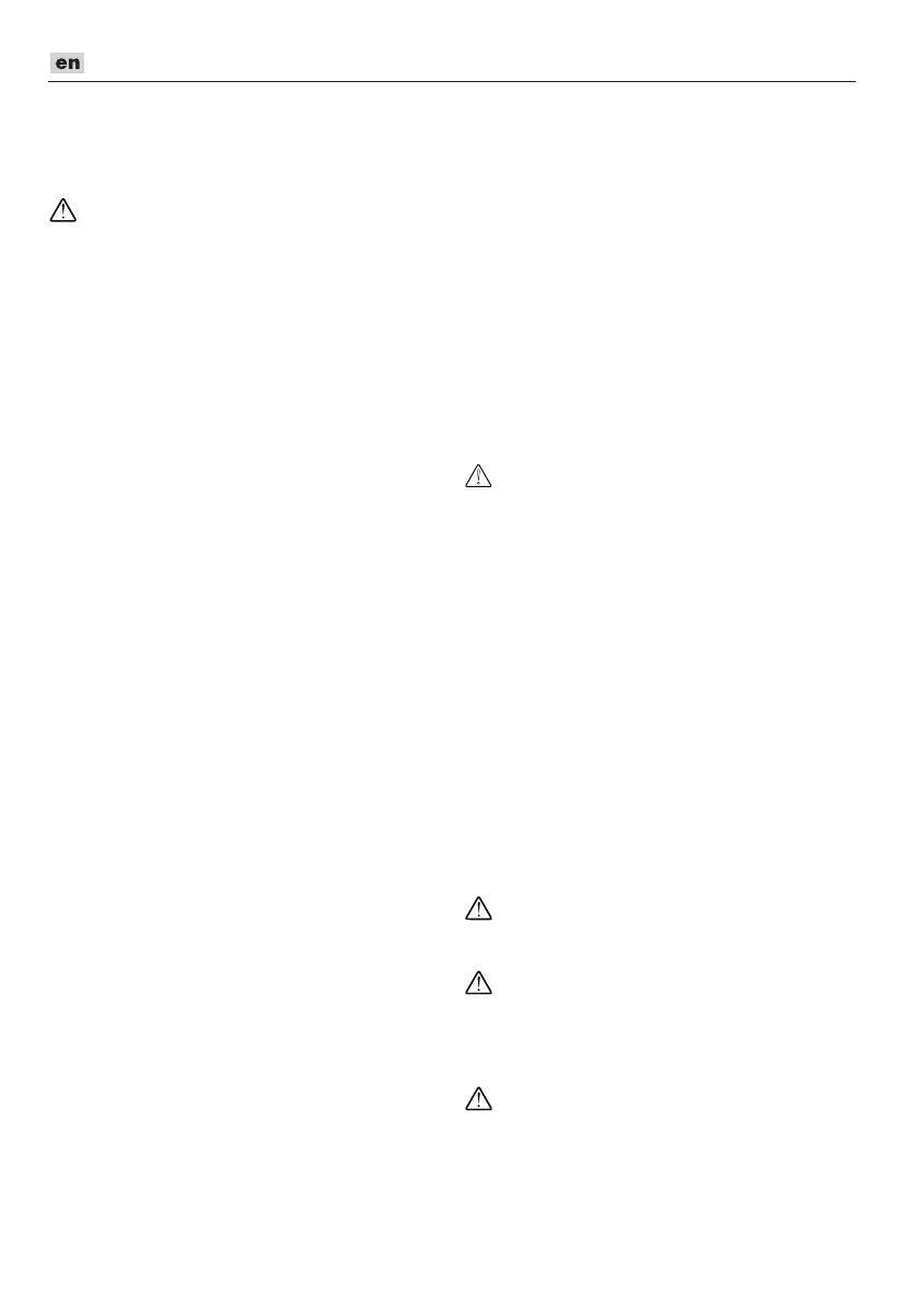 When the saw is hung by the hook, do not