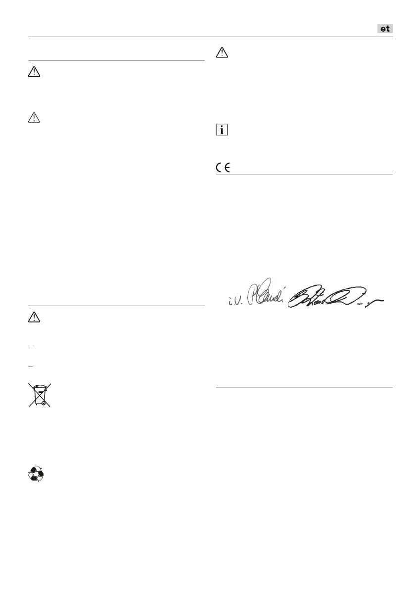 EL, 2006/42/EÜ, 2011/65/EL nõuetega.