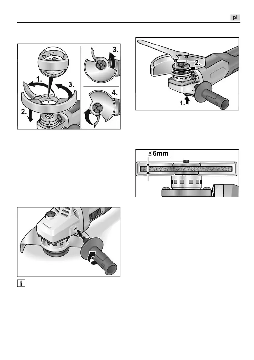 Nałożyć tarczę szlifierską, zwracając