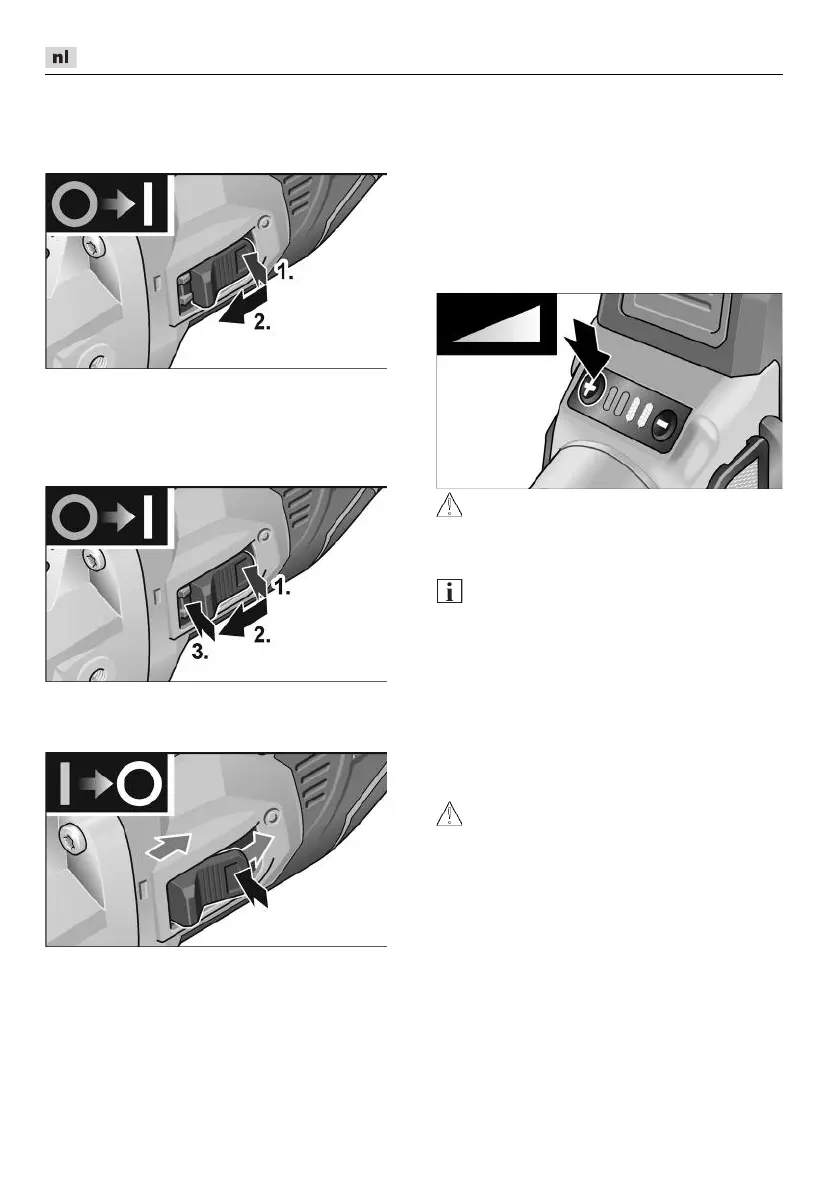Schakelaar (1.) indrukken, naar voren