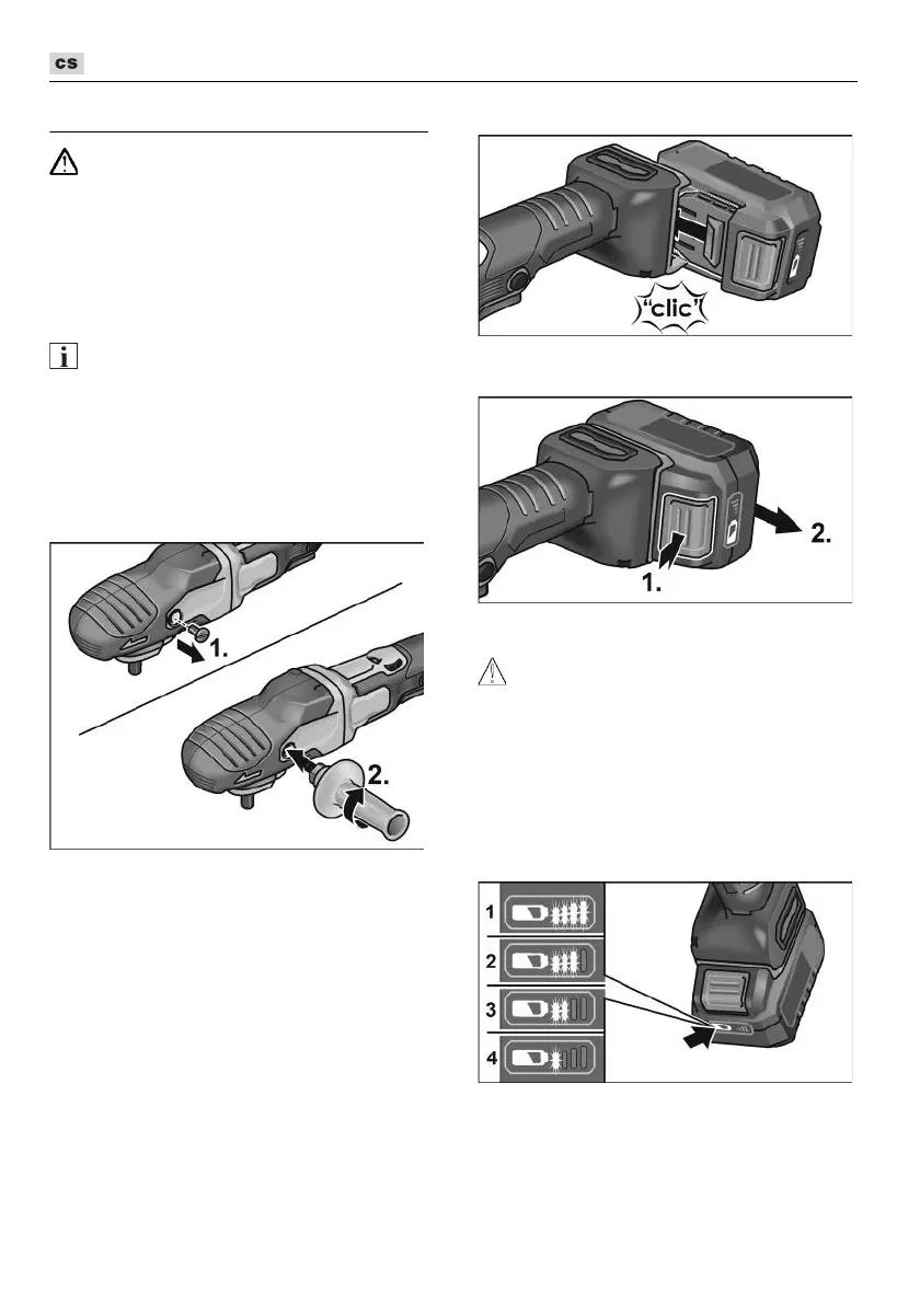 tlačítka (1.) a akumulátor vytáhněte (2.).