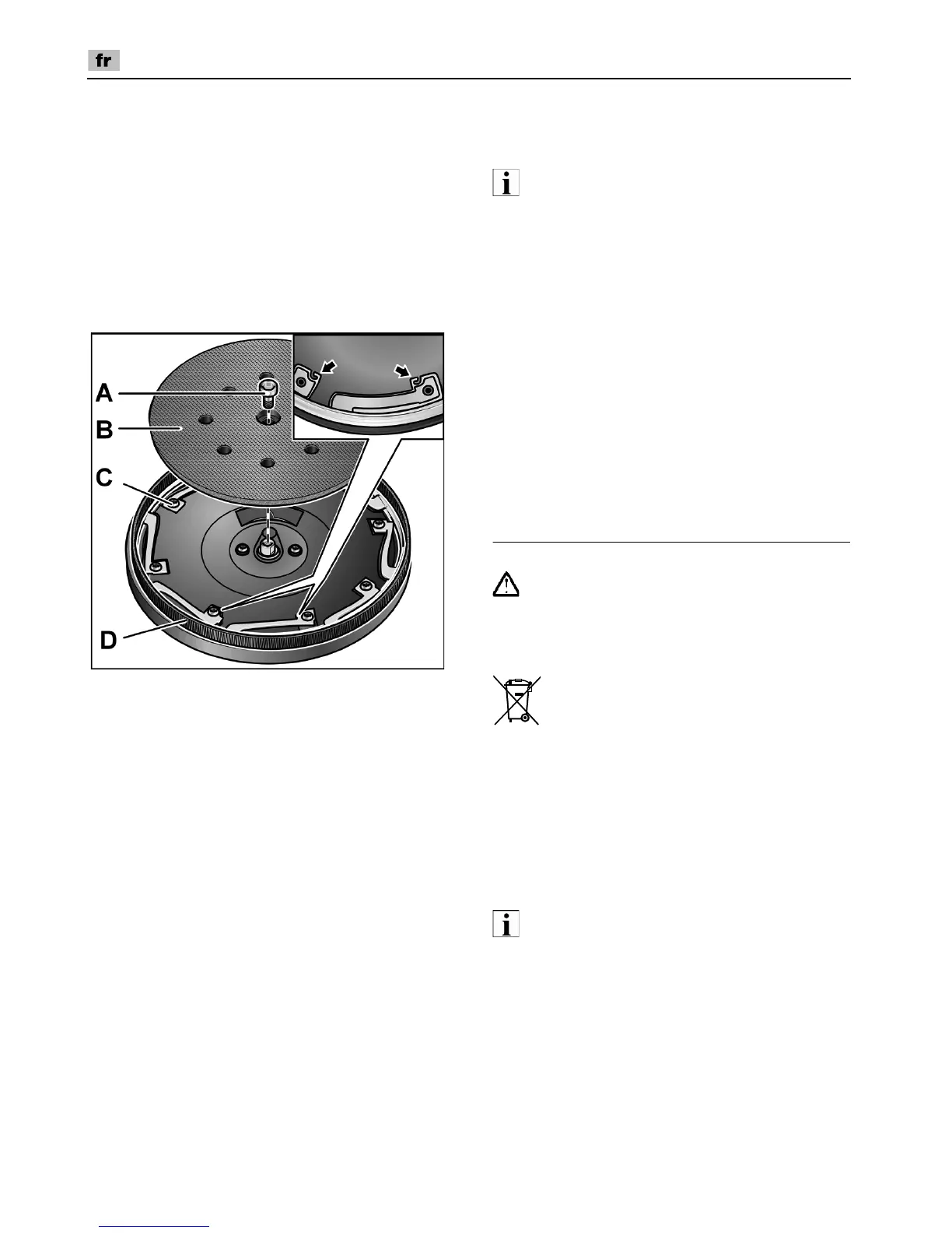 Retirez la plaque de ponçage (B) (voir la