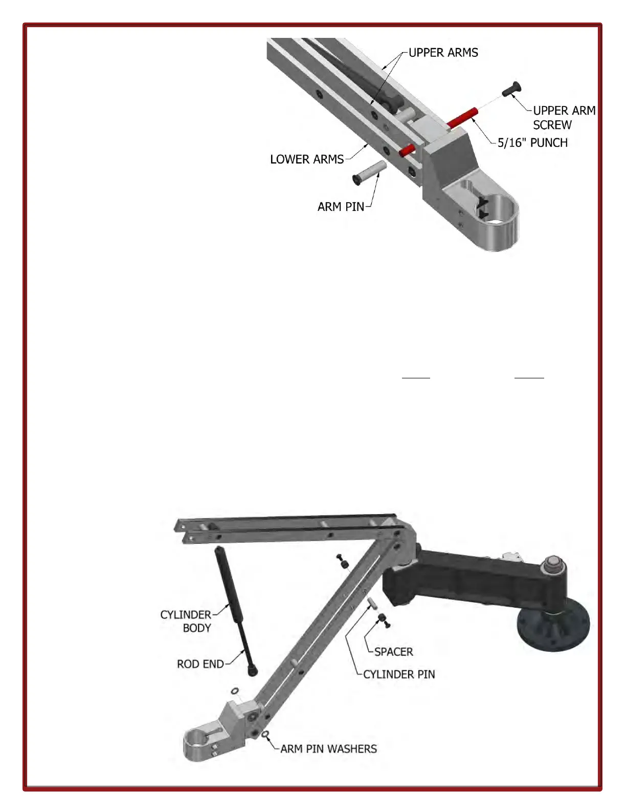 bottom arm. Fasten the 10-32 flat head screws to secure the cylinder to the bottom arms. See Figure 11.