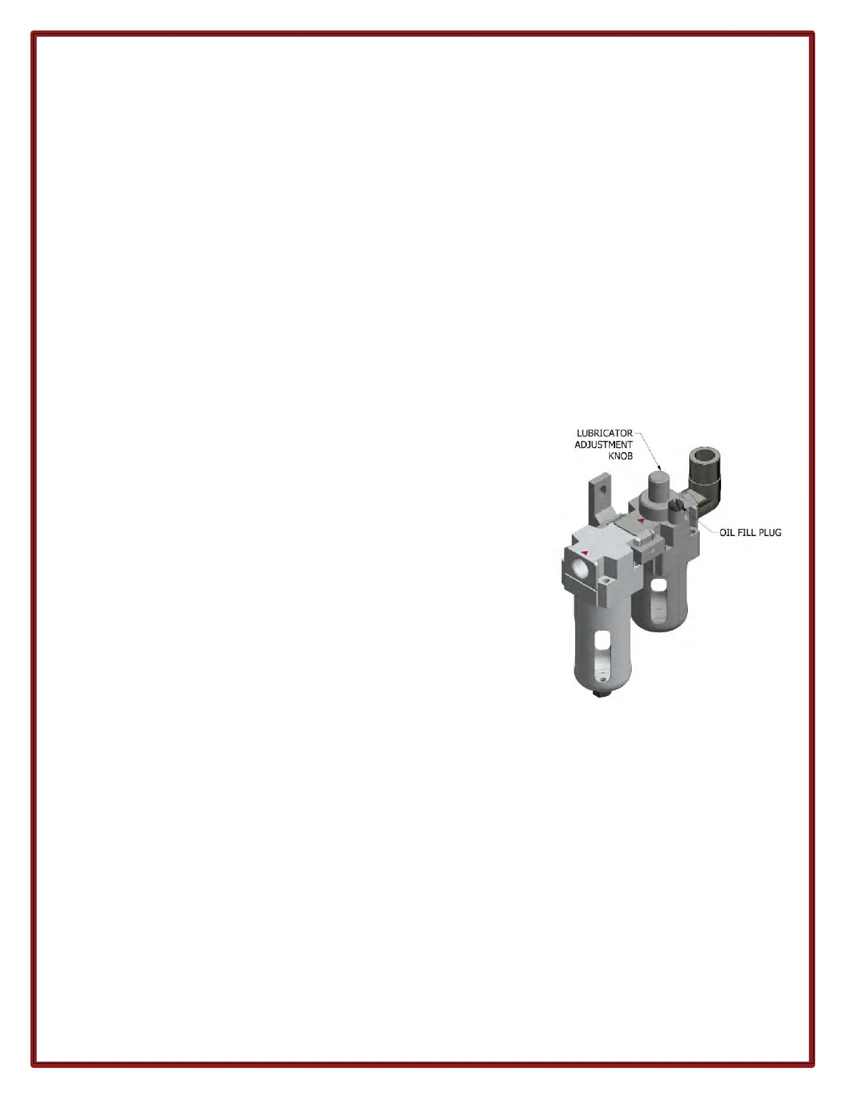 6. Install a ¼” NPT fitting into the incoming air port on the unit’s filter / lubricator (see Figure 2). The