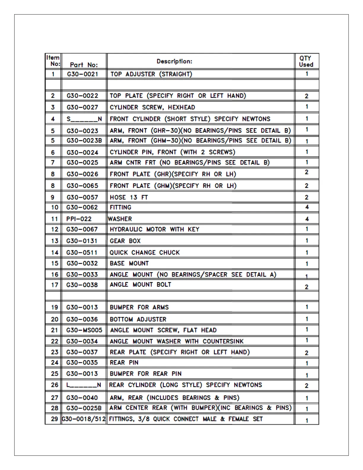 PARTS BREAKDOWN: GH-24, GHM-24, GH-30 & GHM-30