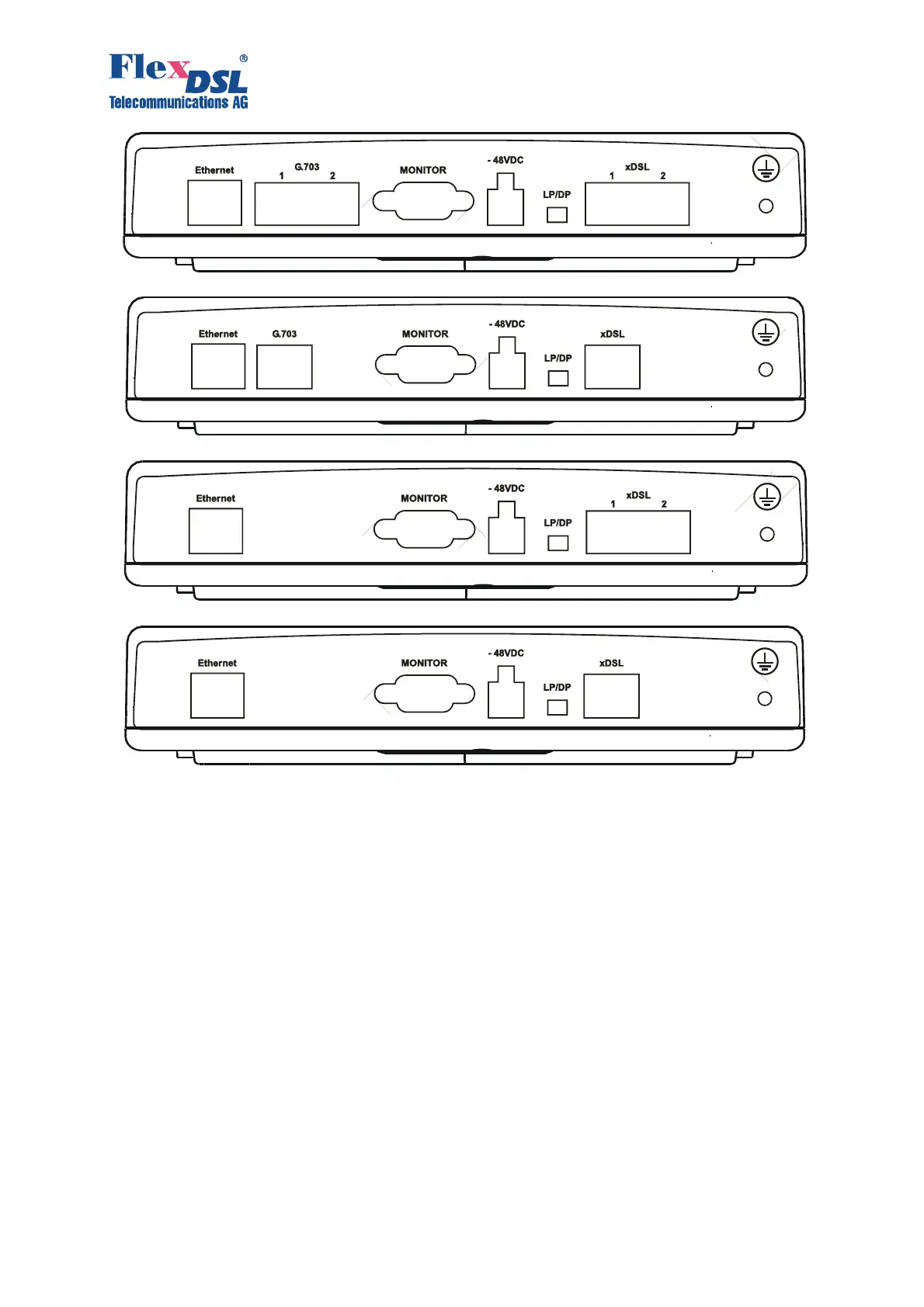 Figure 3.3. Rear view FlexDSL Orion 2 NTU devices