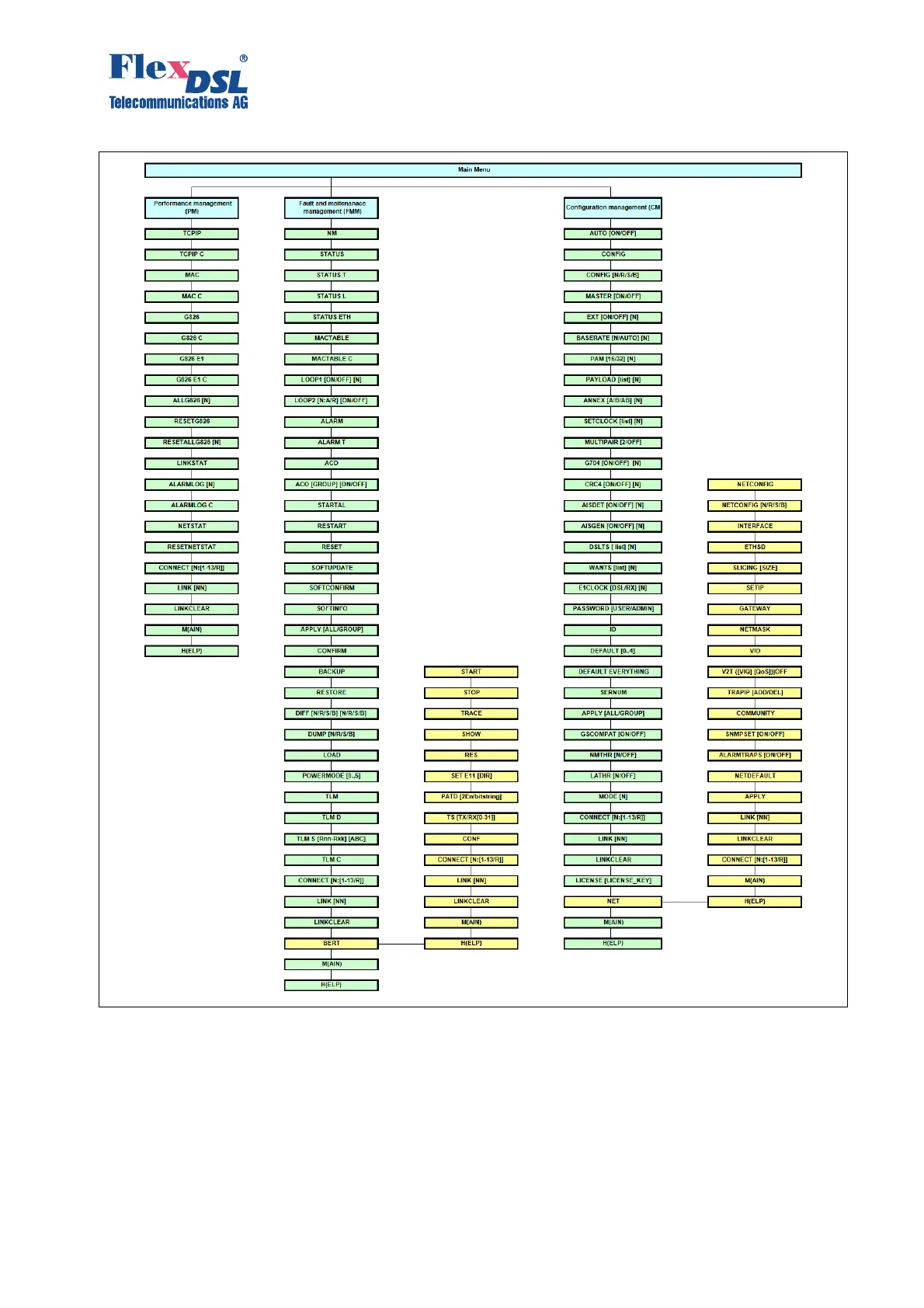 Figure 4.1 Command set tree for NTU, NxDSL, NxE1, 1xEth devices.