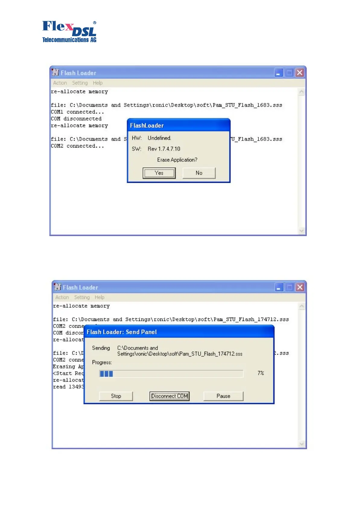 10. The loading progress will be displayed in the window “Flash Loader: Send Panel”.
