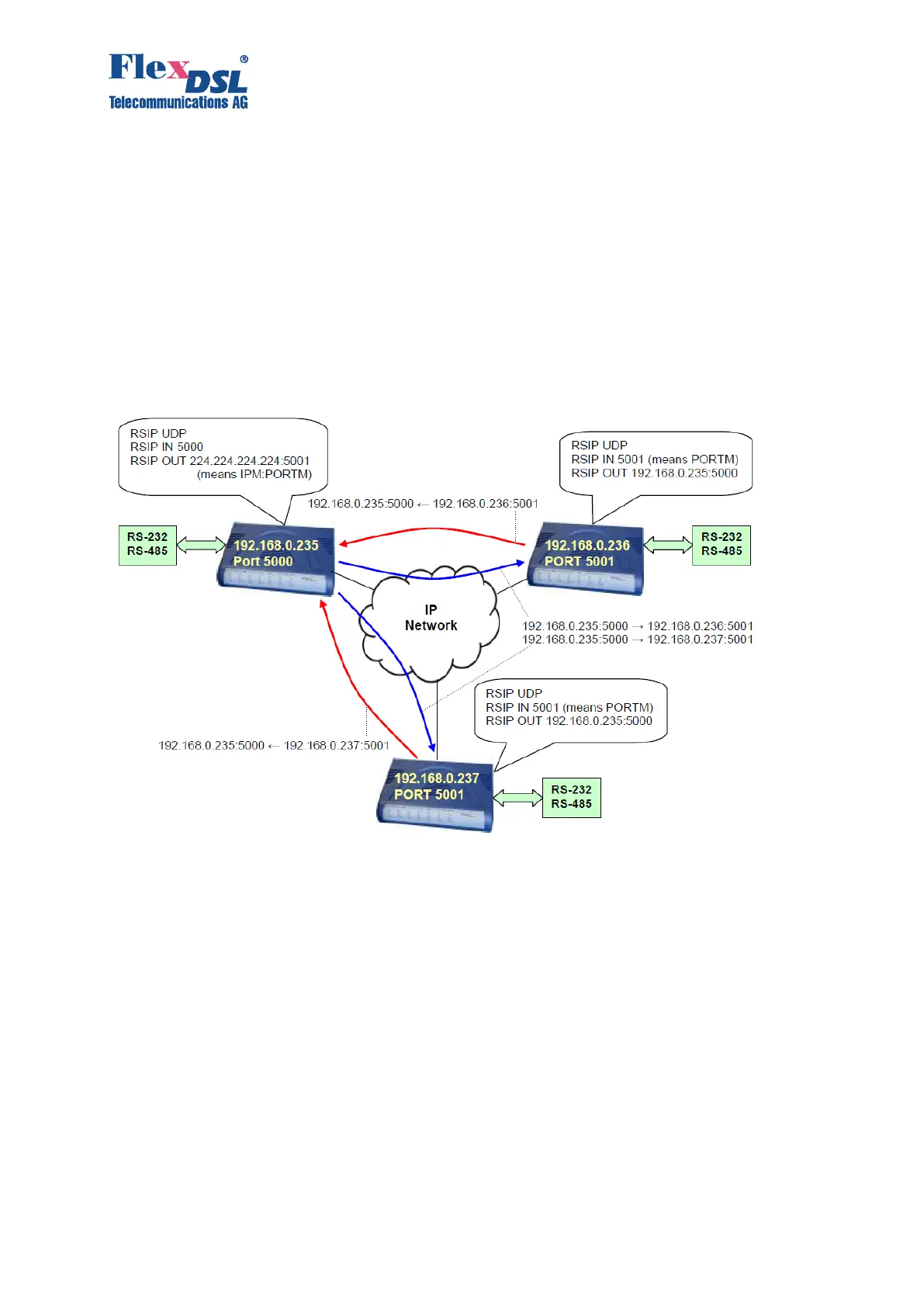 RSIP IN 5000 RS: Means to select port 5000 for the reception of serial data packets