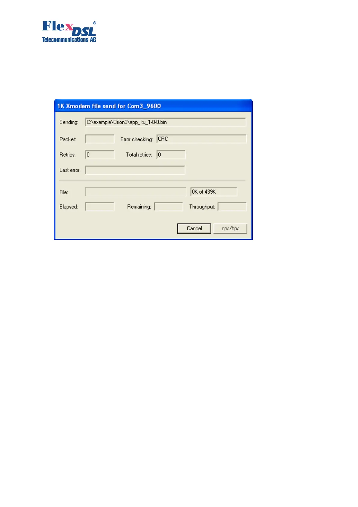 14. If the software is downloaded, the “1K Xmodem file send for...” window closes automatically.
