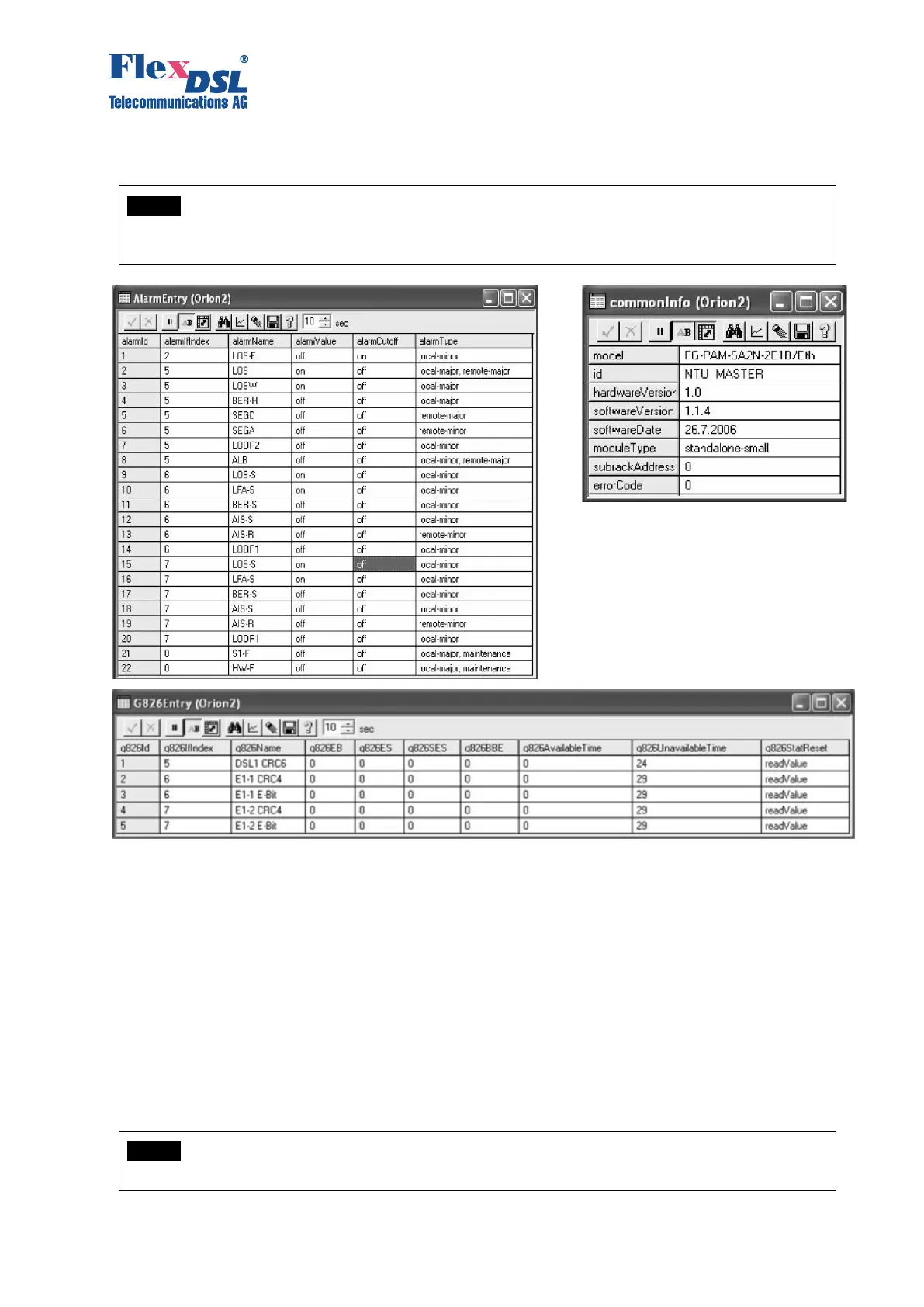Figure 3.27 SNMP– “Alarm statistics”, “Information about the device”, “G.826 statistics”