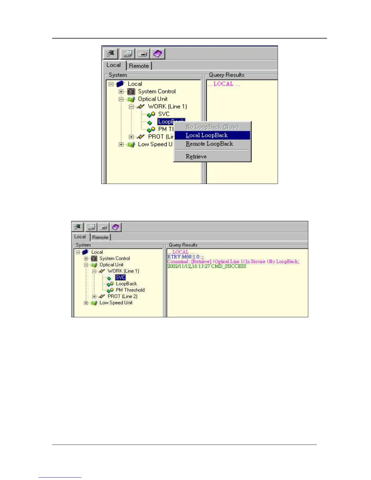 The retrieve command gets the unit setting information. For example, Fig.25 will display the optical unit