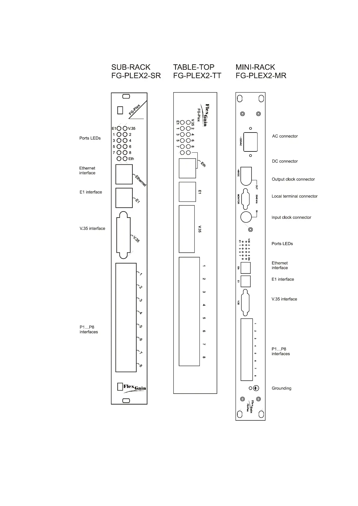 Figure 4. Front panels of Sub-Rack, Mini-Rack and Stand Alone devices.