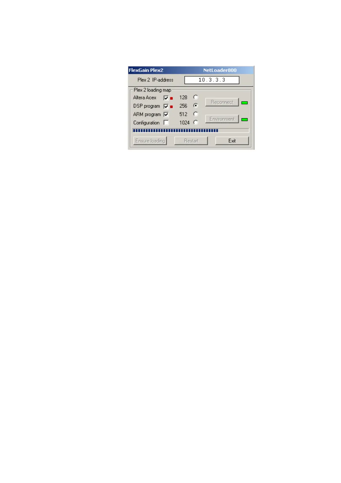 FlexGain Plex, V2 device by clicking Restart. The software