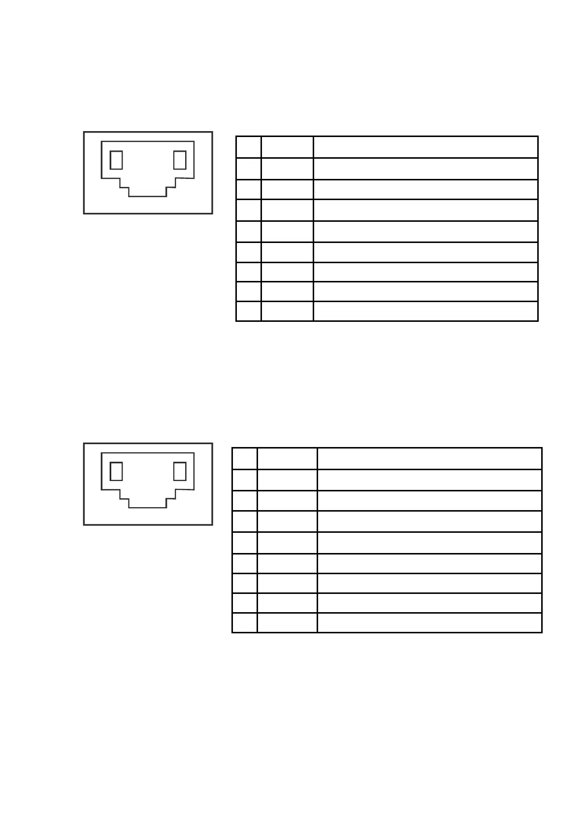 Type: RJ-45 (male). ITU/ITA T568B Standard. Available in all models. SWITCH-type