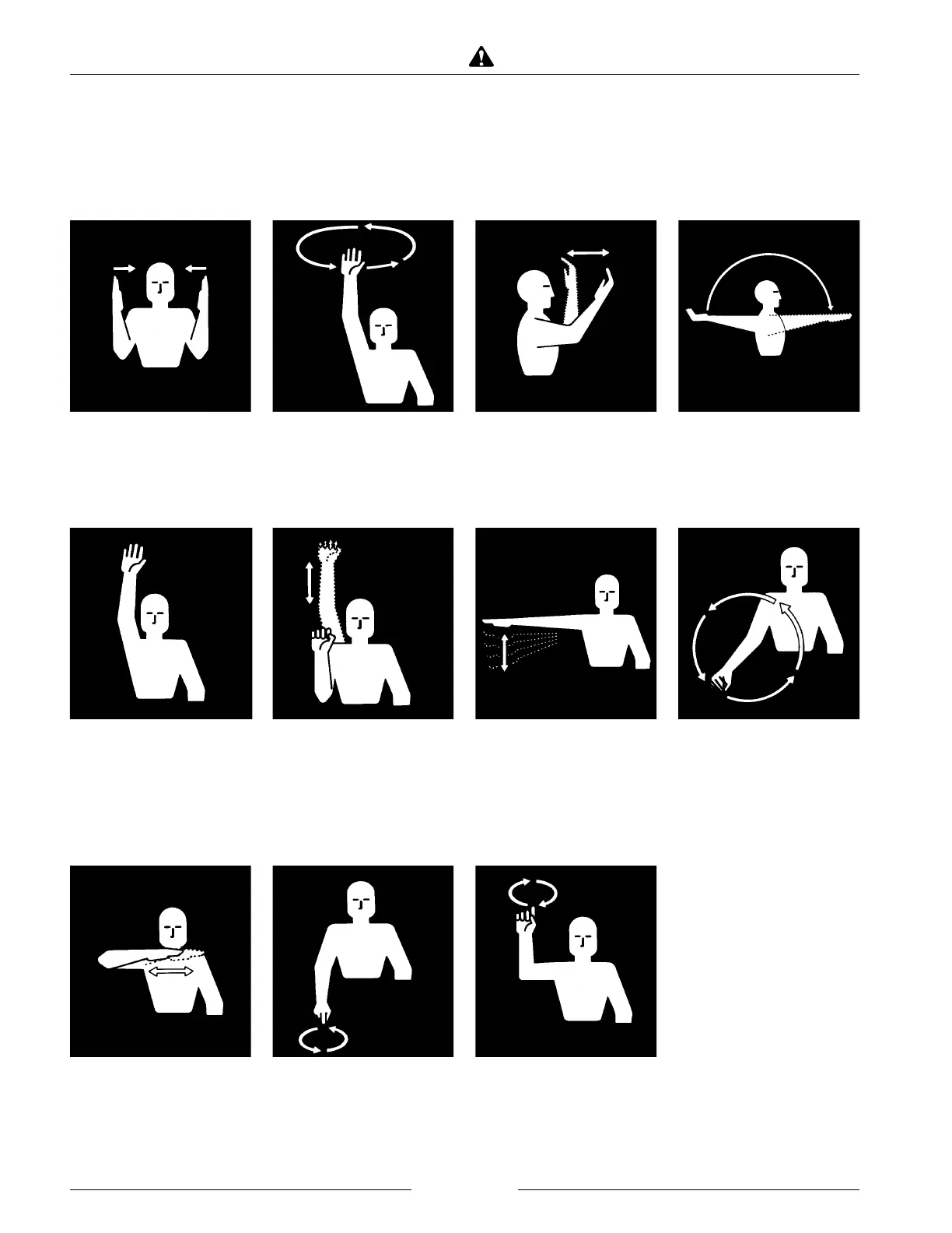 communication by voice. These hand signals, adopted by the Society of Agricultural Engineers, provide an easy means of
