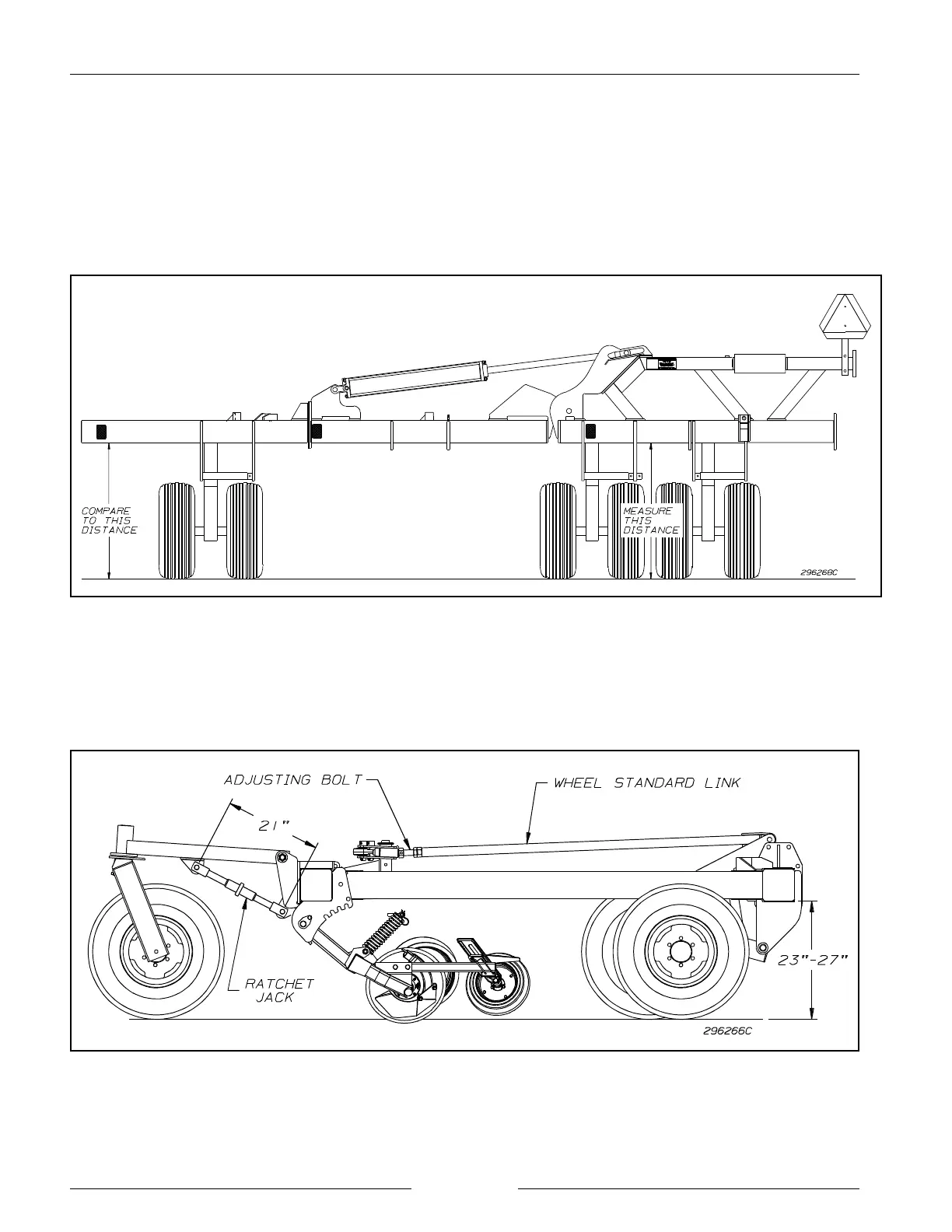 3. Adjust the bolt on the wheel standard link to raise or lower the wing until the center frame distance is equal to the