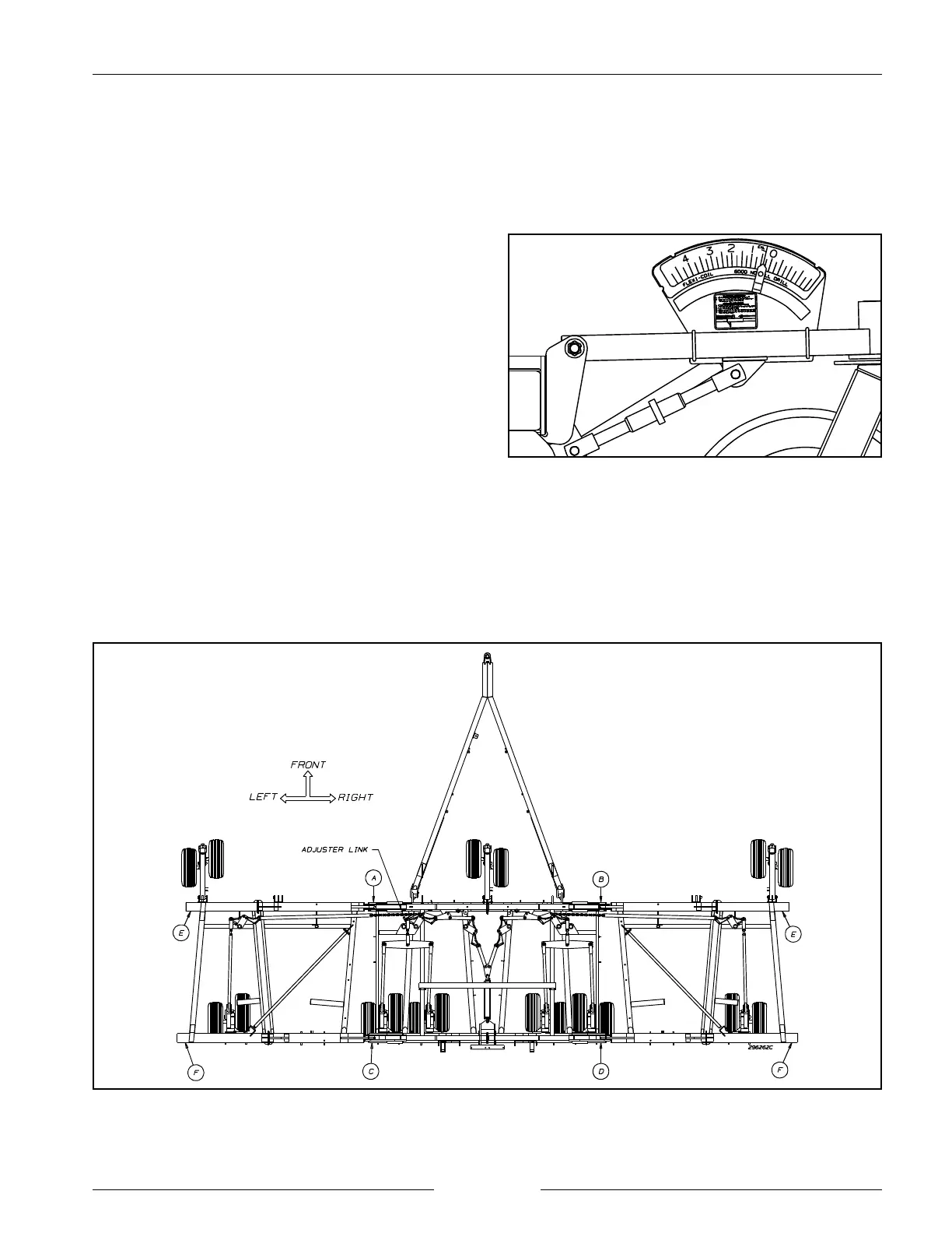 The depth gauge is mounted to the front gauge wheels and is intended as a reference only. Actual working depth of the air
