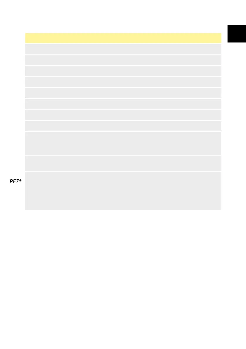 The report data stored and output by the PF7 are the values for the following: