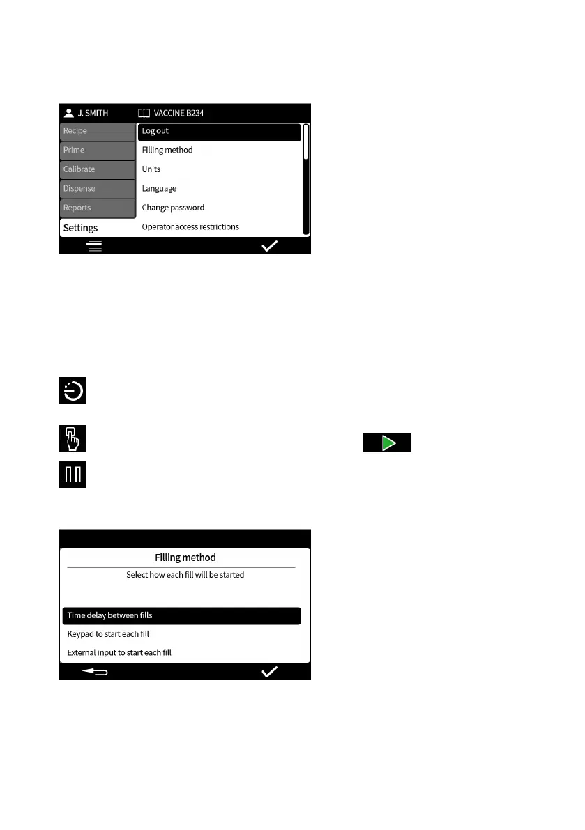 Keypad to start each fill—Manual filling. Press to start each fill.