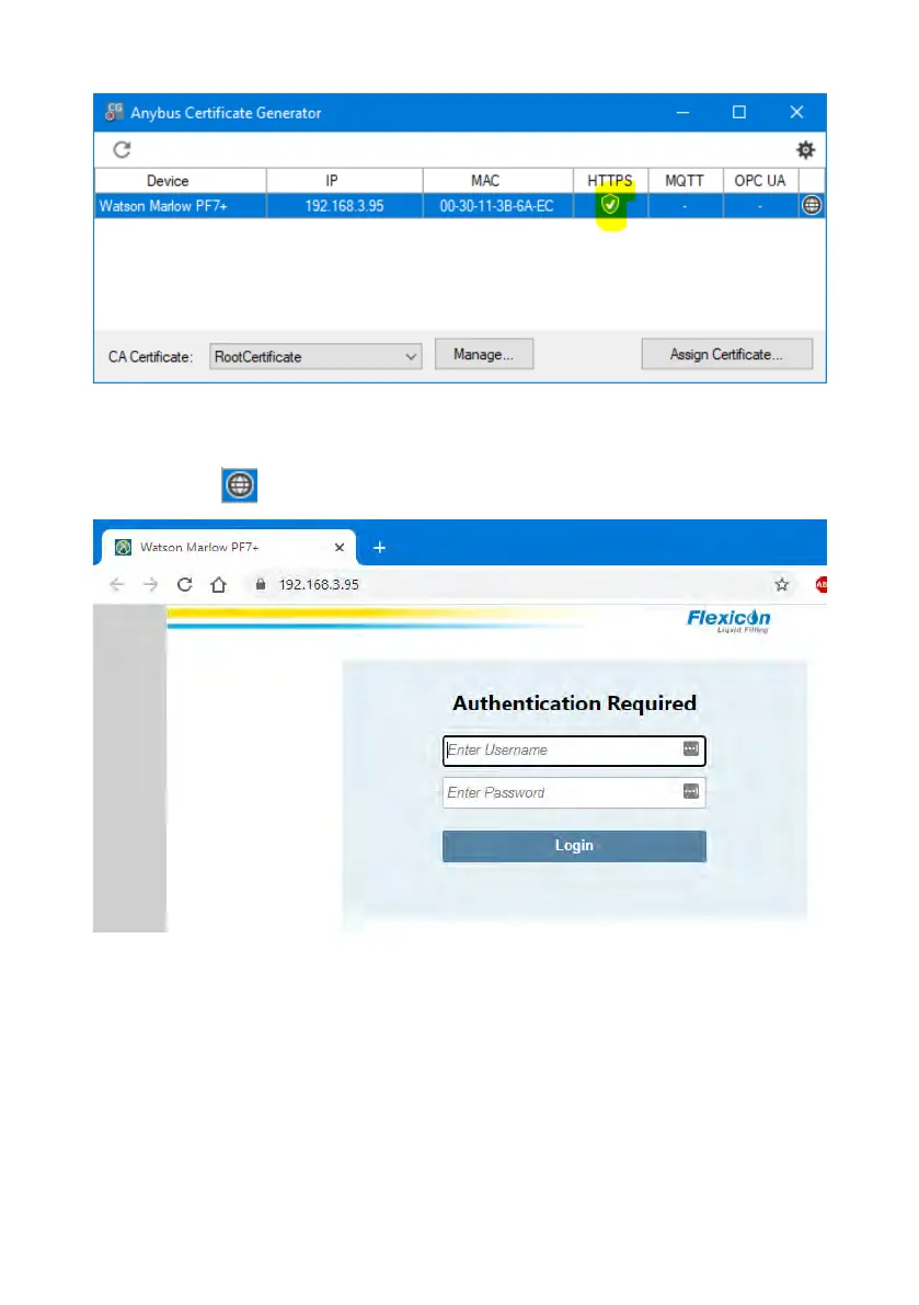 Figure 50 - The Anybus Certificate Generator shows an https certificate