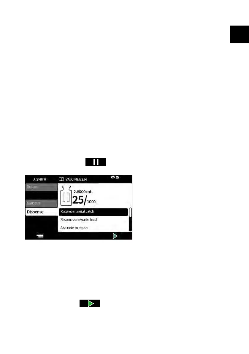 • Resume manual batch — This can be hidden, refer to "Operator access