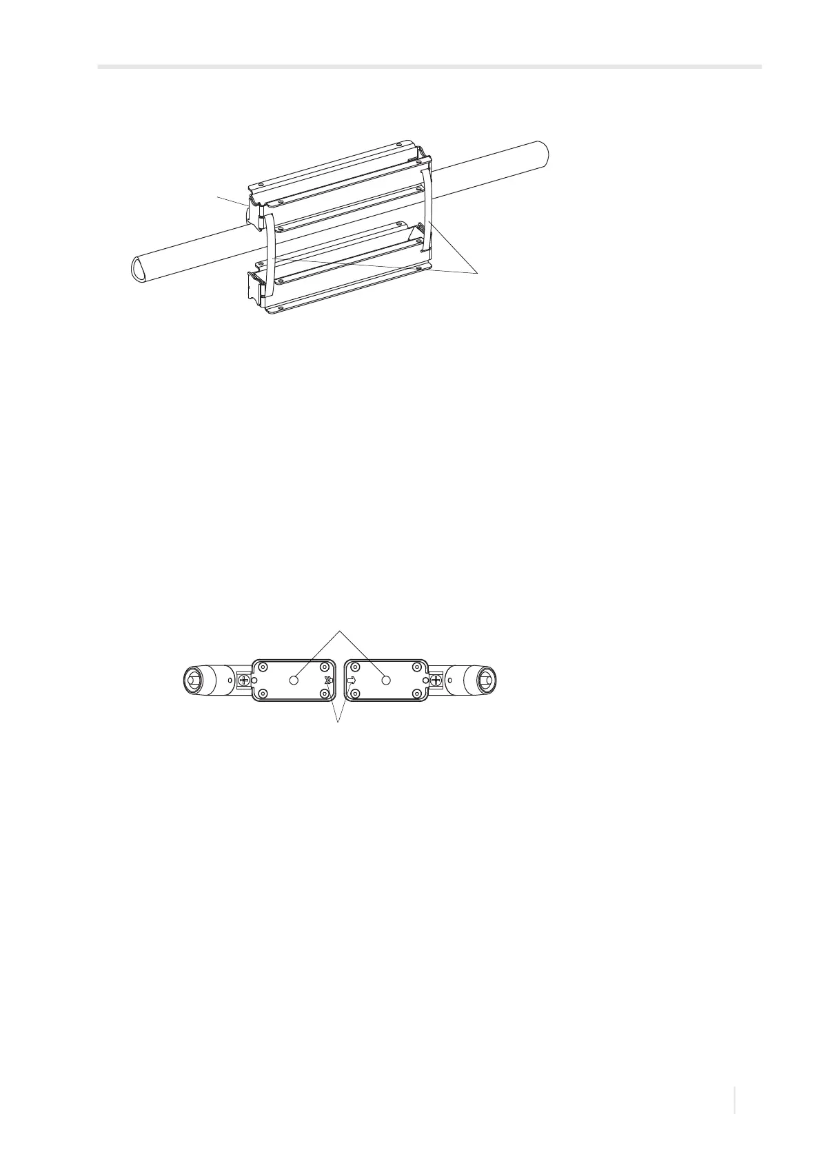 • Observe that there must be no air pockets between the transducer contact surface and the pipe wall.