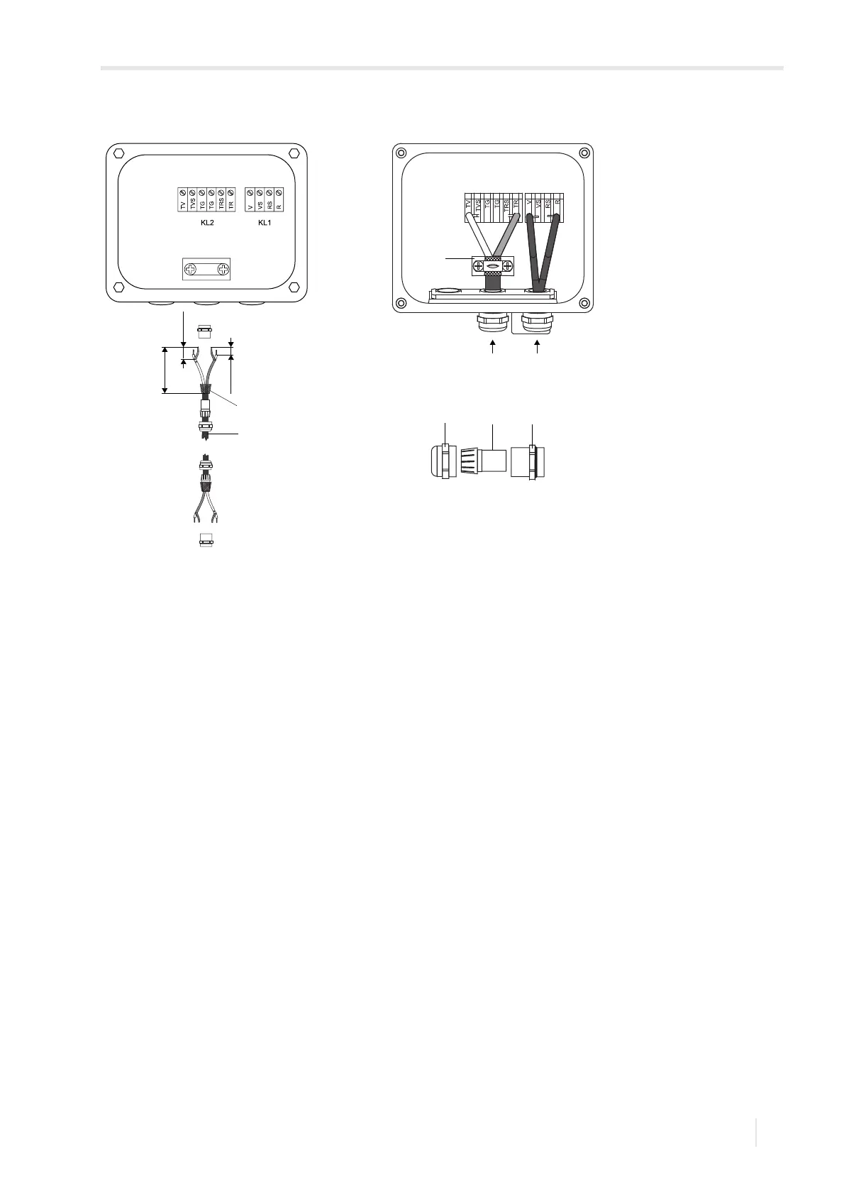 Fig. 7.10: Connection of the extension and transducer cable to the junction box