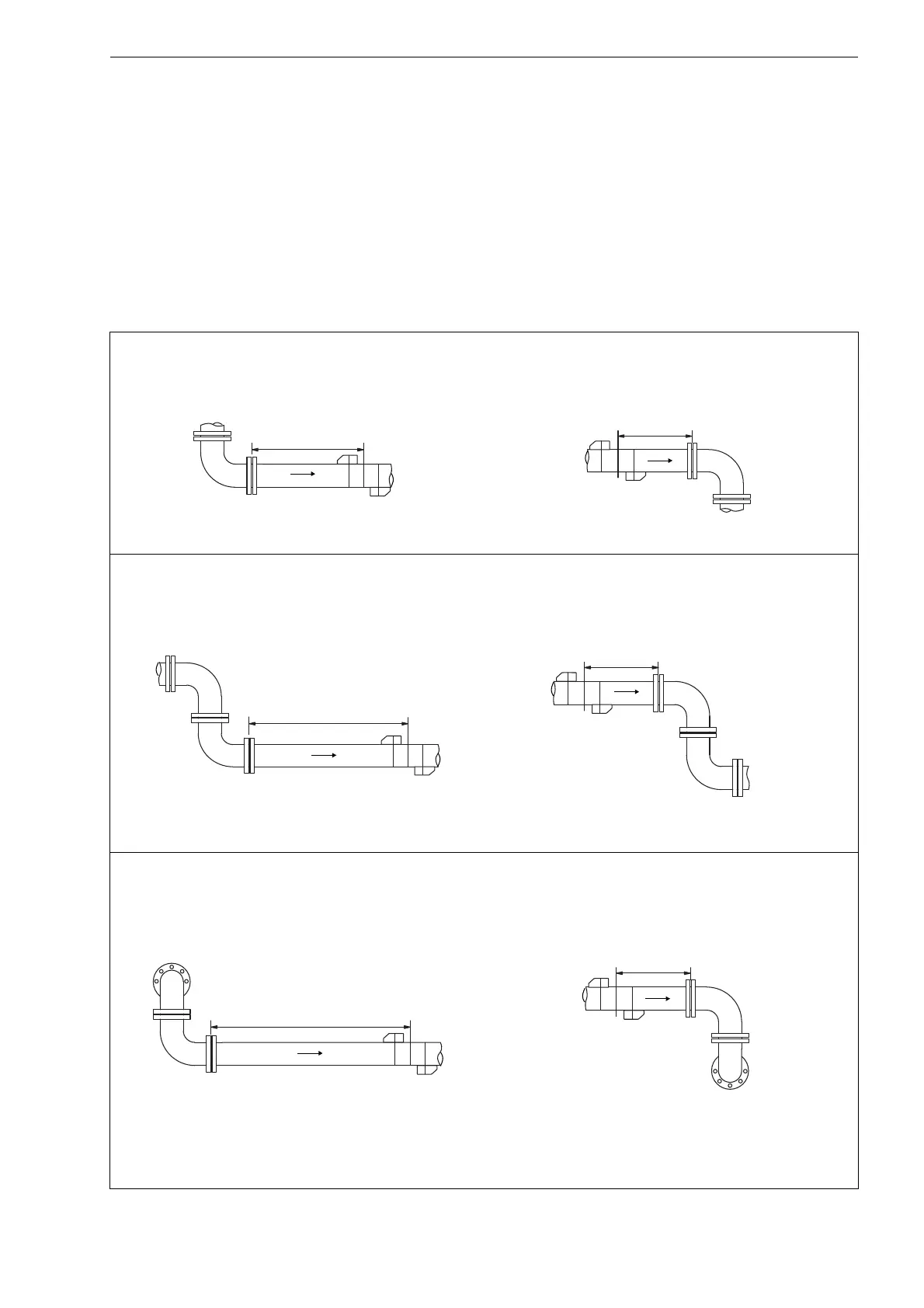 Recommended straight inlet and outlet pipe lengths for different types of flow disturbance sources are shown in the ex-