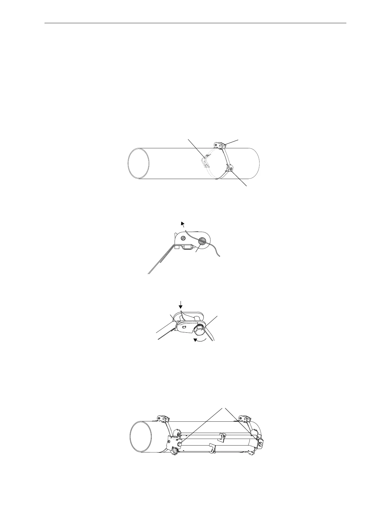 – On a horizontal pipe, mount the tension strap clamp on the side of the pipe, if possible.