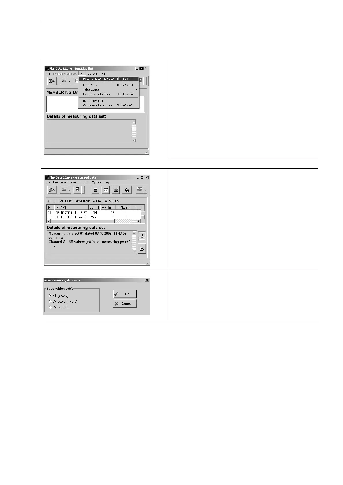 Select the menu: DUT > Receive measuring values.
