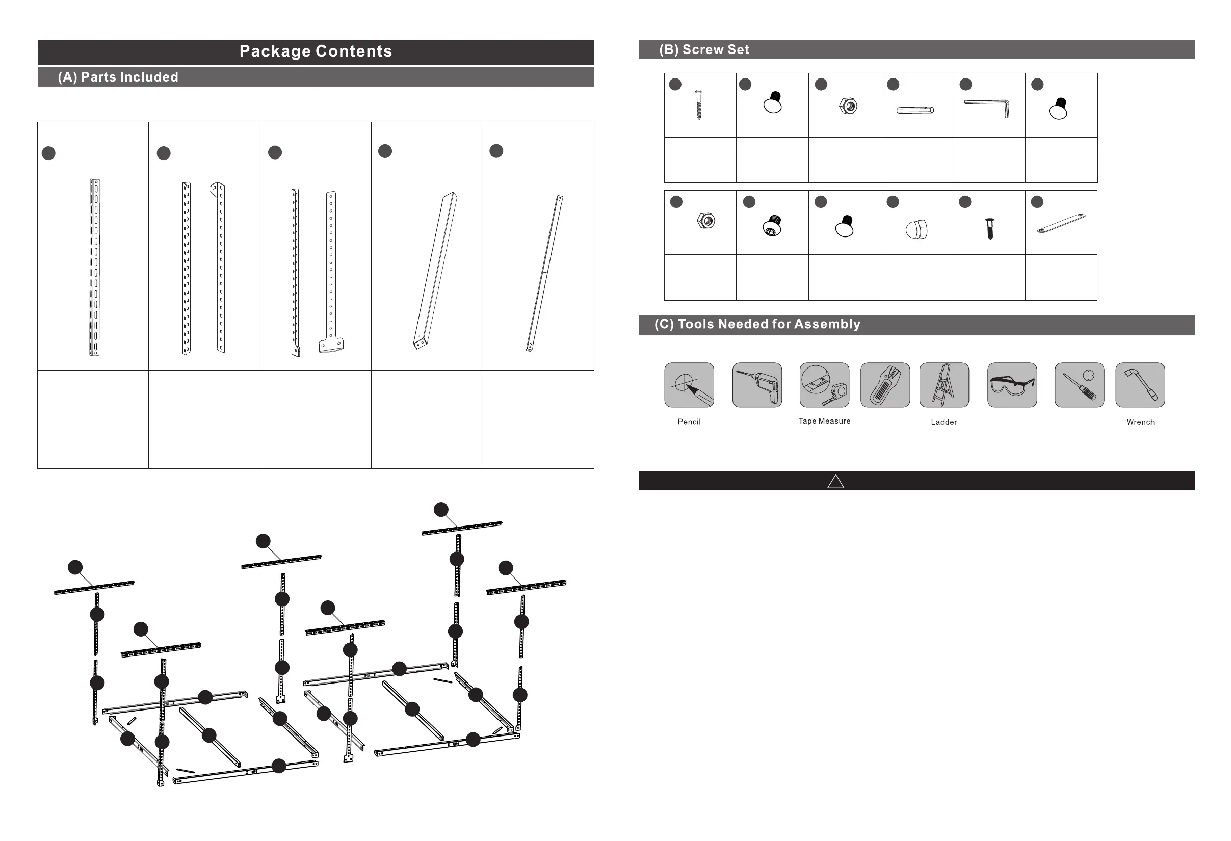● The ceiling must be capable of supporting the combined weight of the garage rack