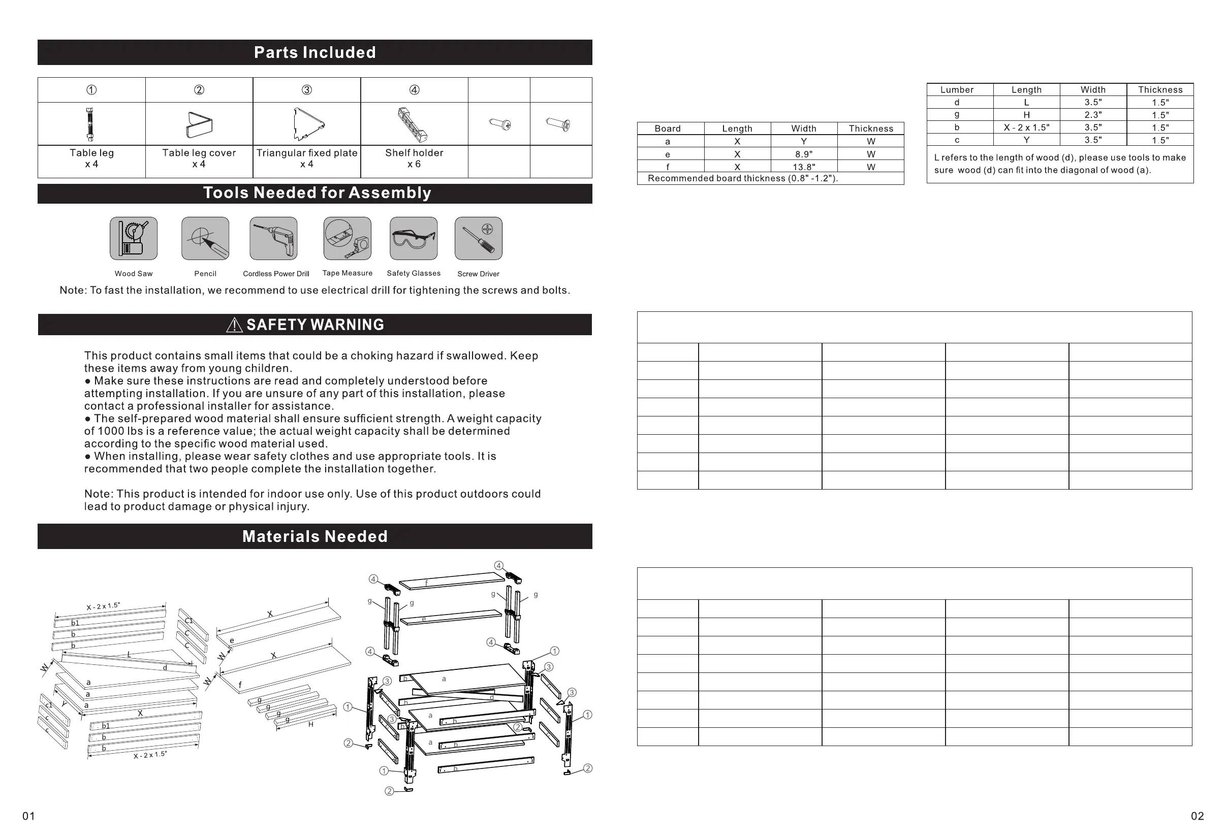 Fleximounts WB107B - Parts Included and Tools Needed; Parts Included; Tools Needed for Assembly