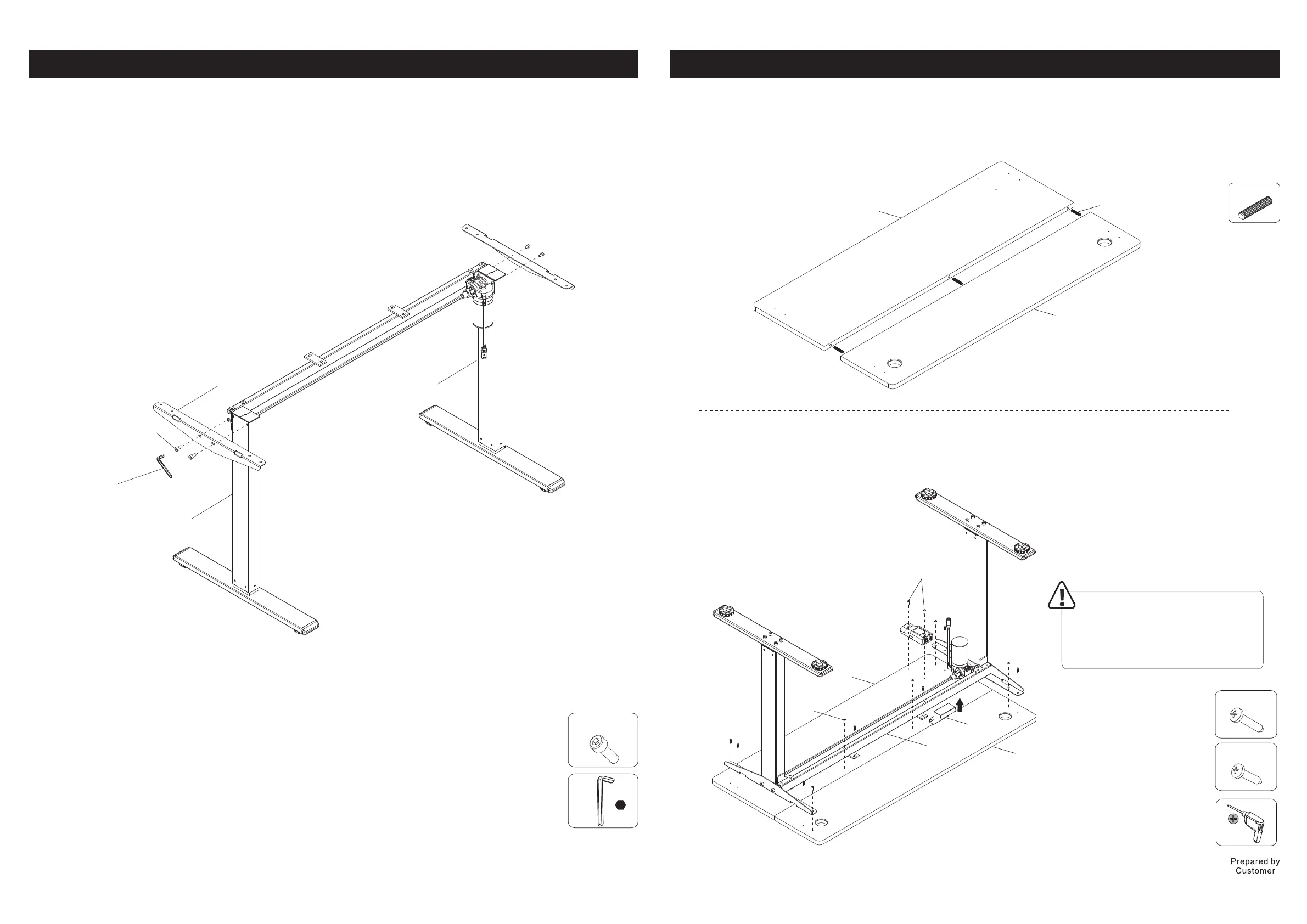 the crossbeam (7). Attach the frame to the desk top using screws (E), Attach the keypad (13)