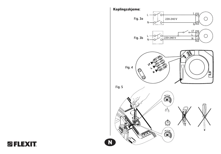 til koplingsskjema, Fig. 3a - 3b. Sørg for at ca. 25 cm kabel er