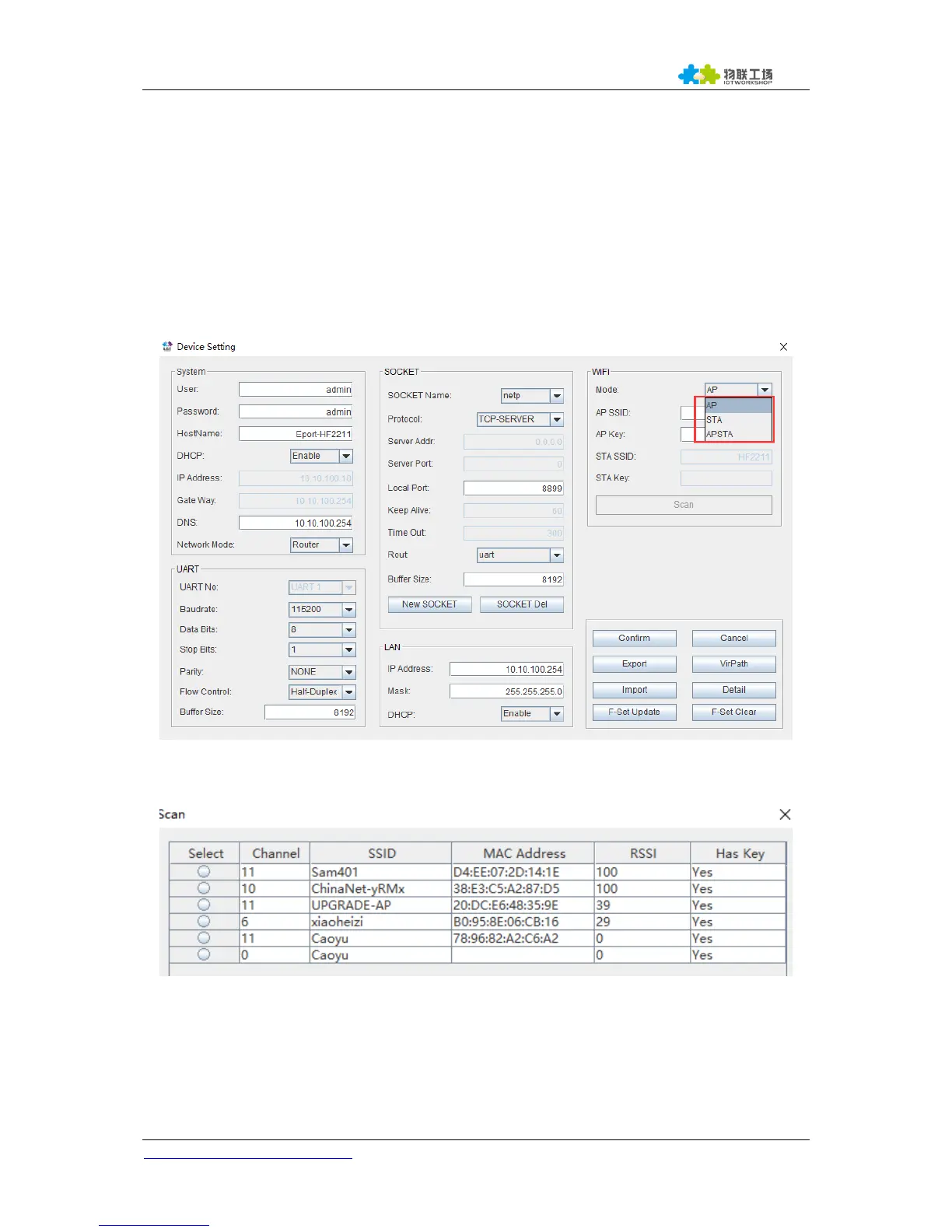 Open the IOTService after connect to the AP hotspot generated by HF2211 or connect to Product