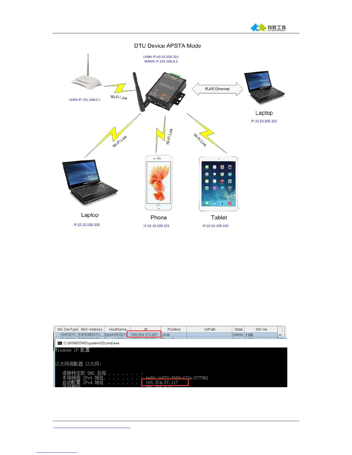HF2211 servers as APSTA and generate a central network. The IP addresses of all the devices and