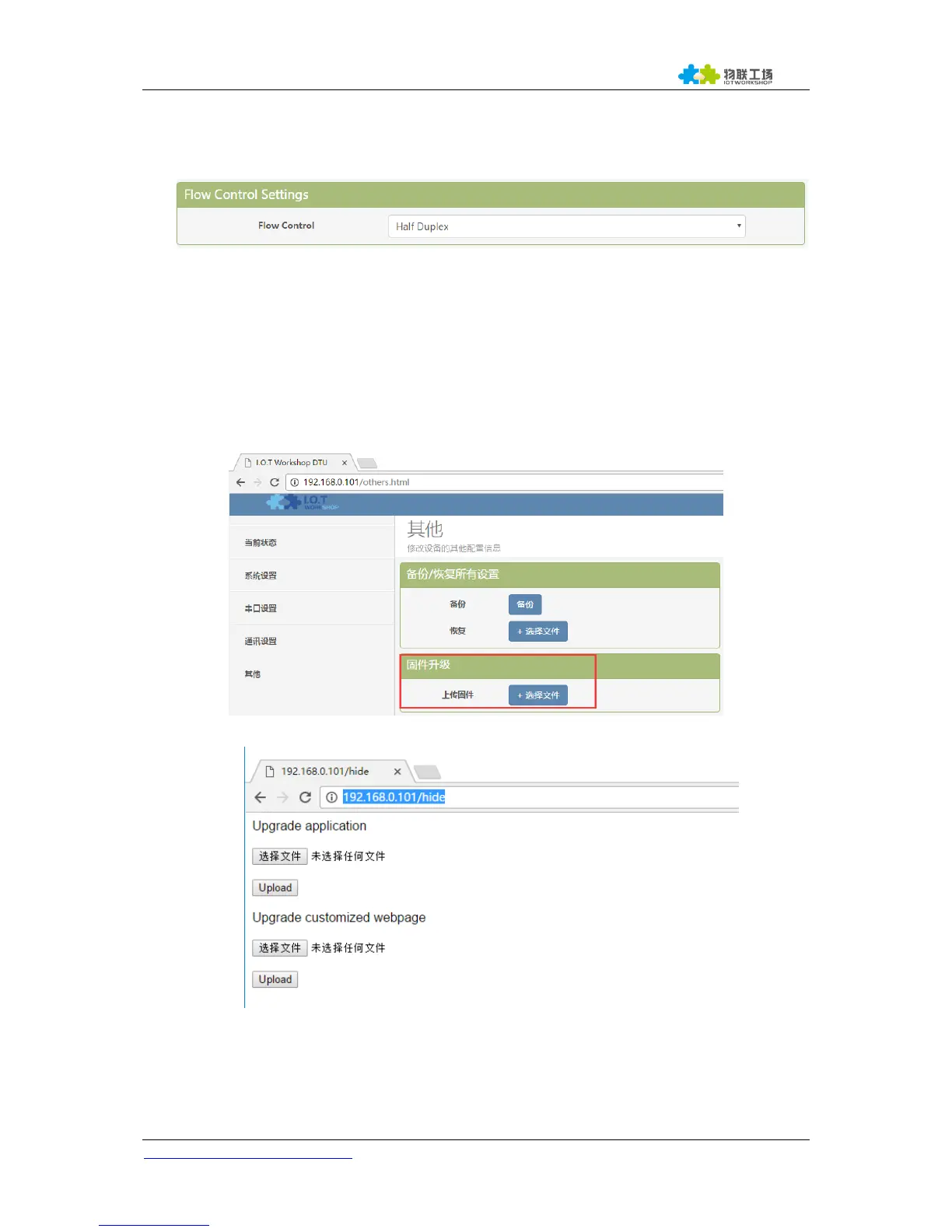 HF2211 support OTA(over the air) firmware upgrade. User can use webpage to upgrade its firmware,