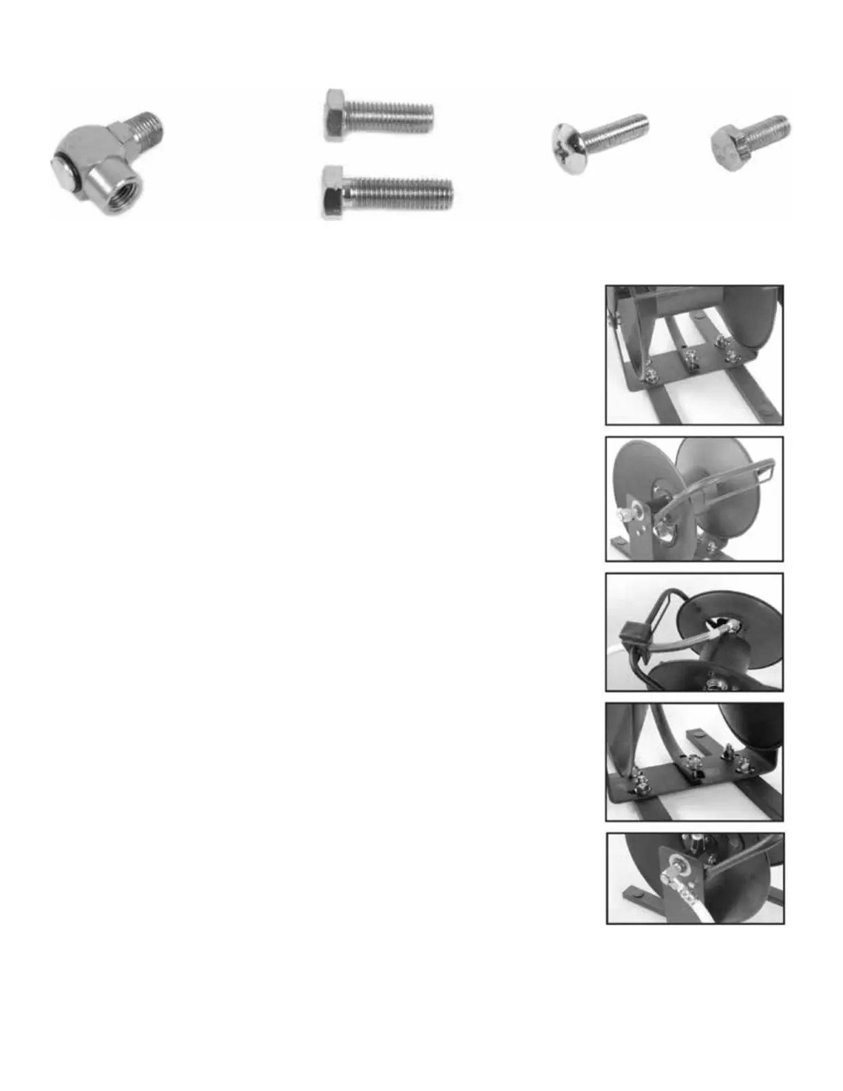 2. Attach hose layering bracket to mounting base, requires 4 (#4) bolts and 4 small lock nuts / washers. See Figure 2,
