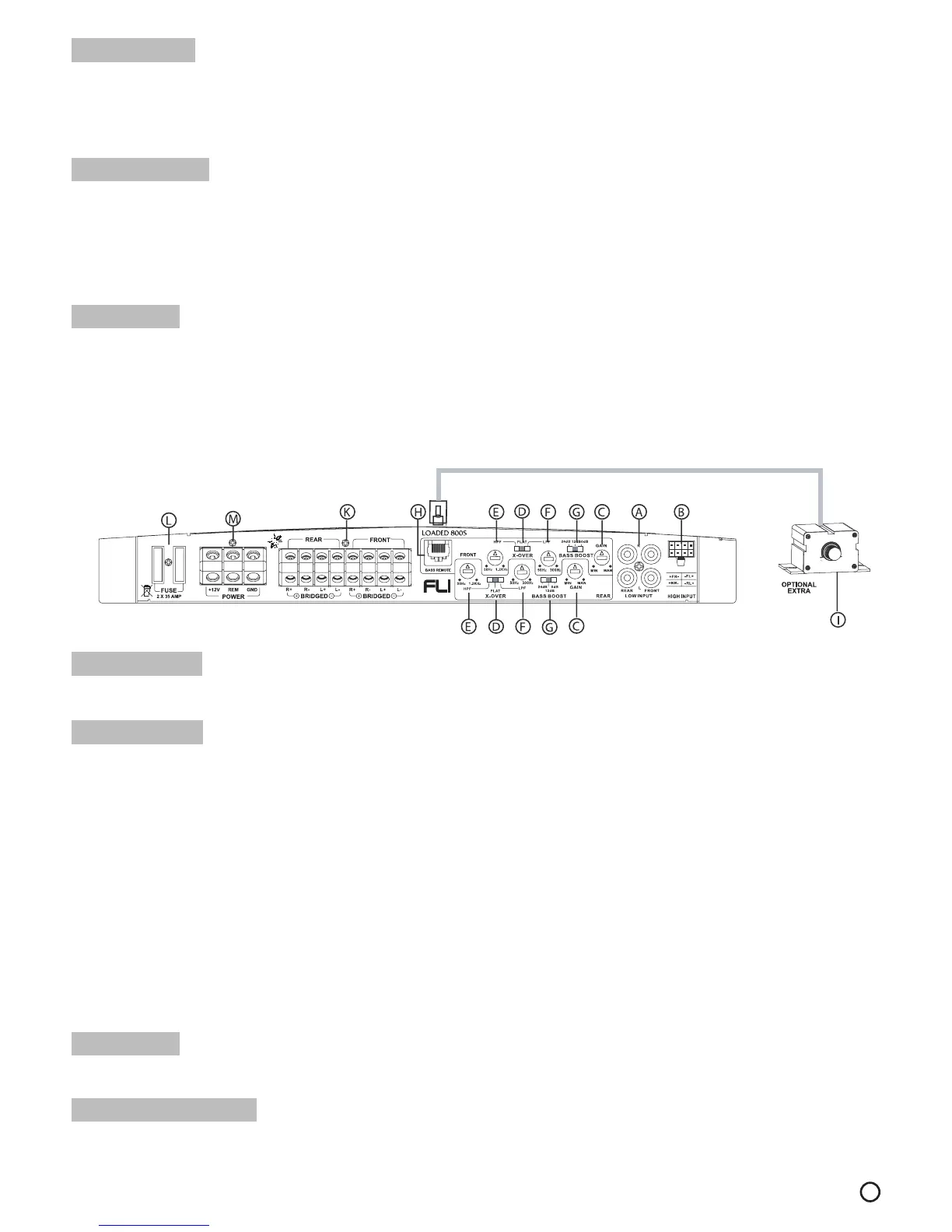 Used to match the input signal of the source (headunit) to the amplifier. See the setup section for more details.