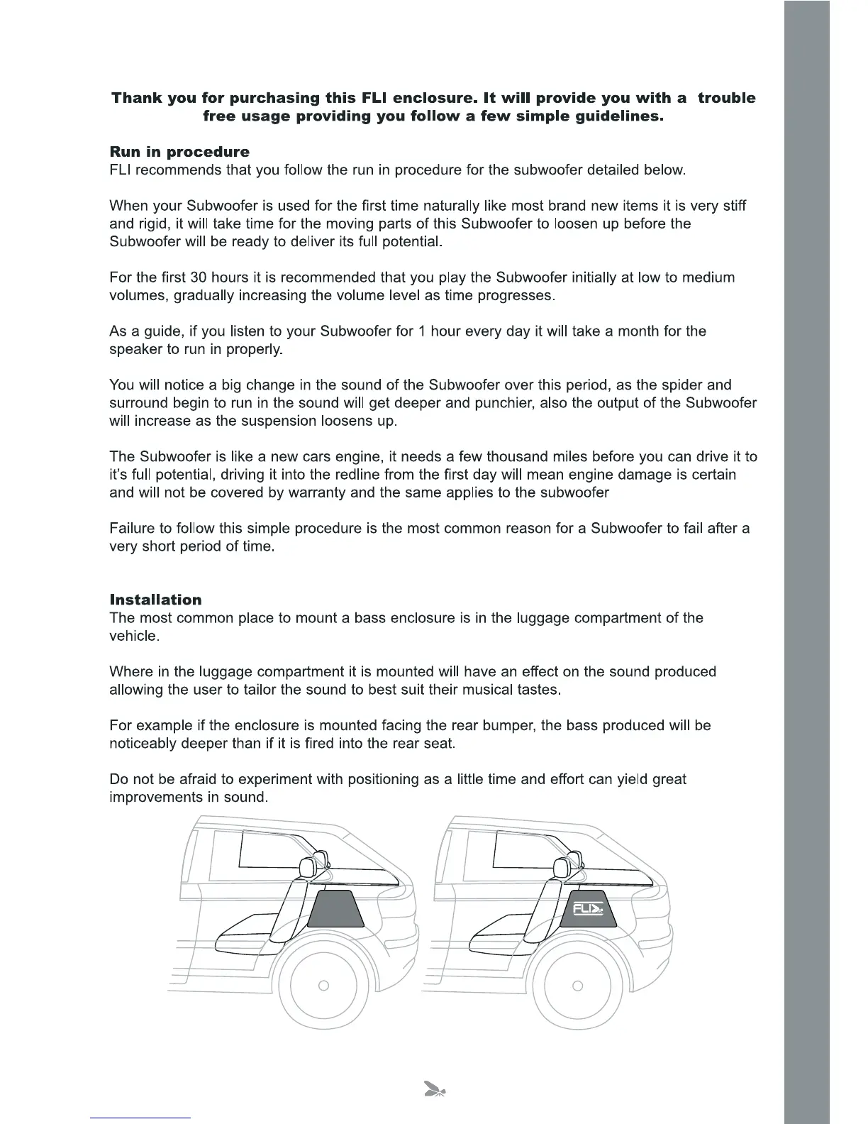 FLI FT12 - Usage and Installation; Run-in Procedure; Installation Guidelines