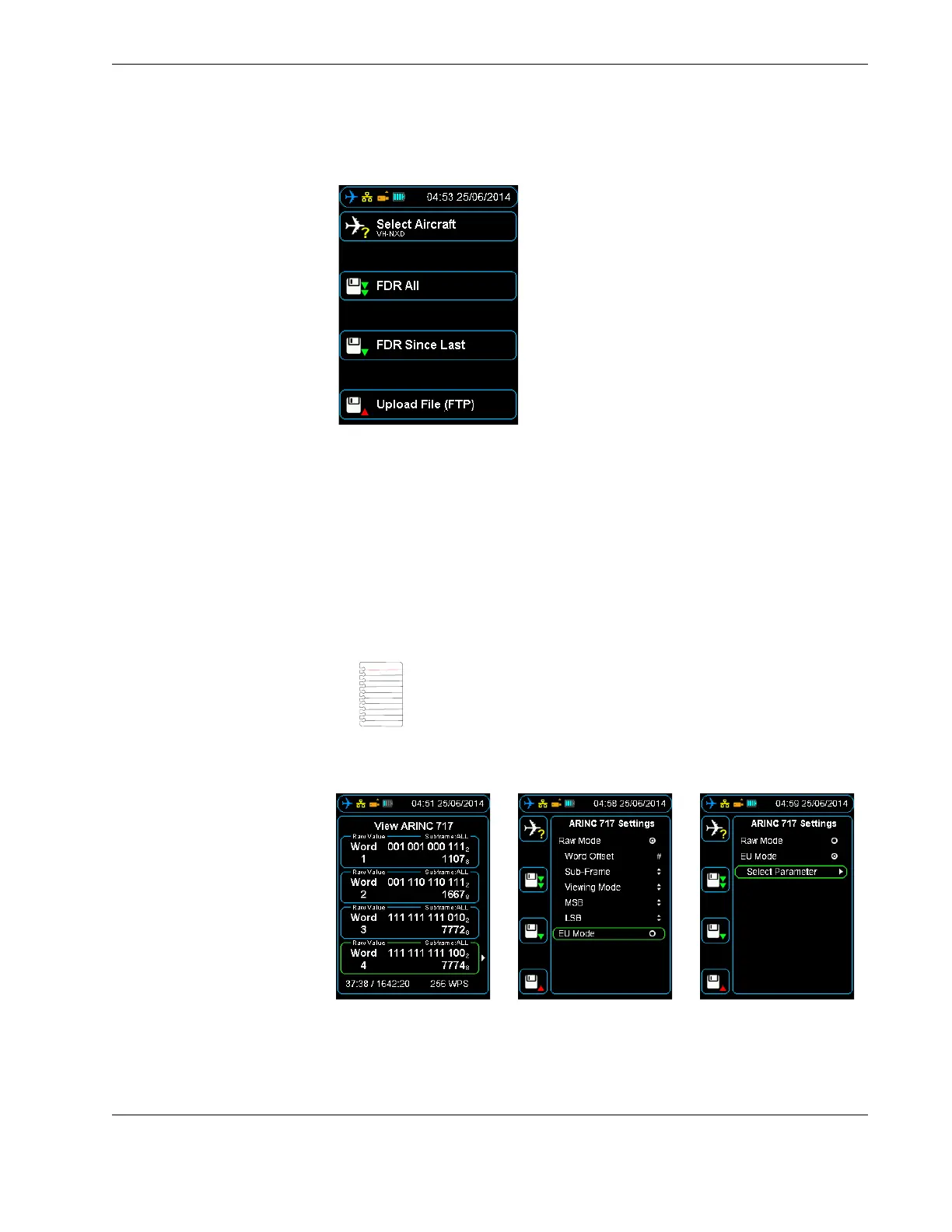 4. Press right to display the ARINC 717 settings menu.