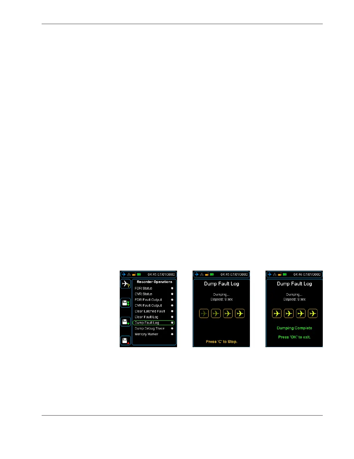 Download of CVFDR fault logs. See Figure 37.0, ”FA2100 Recorder Operations - Dump