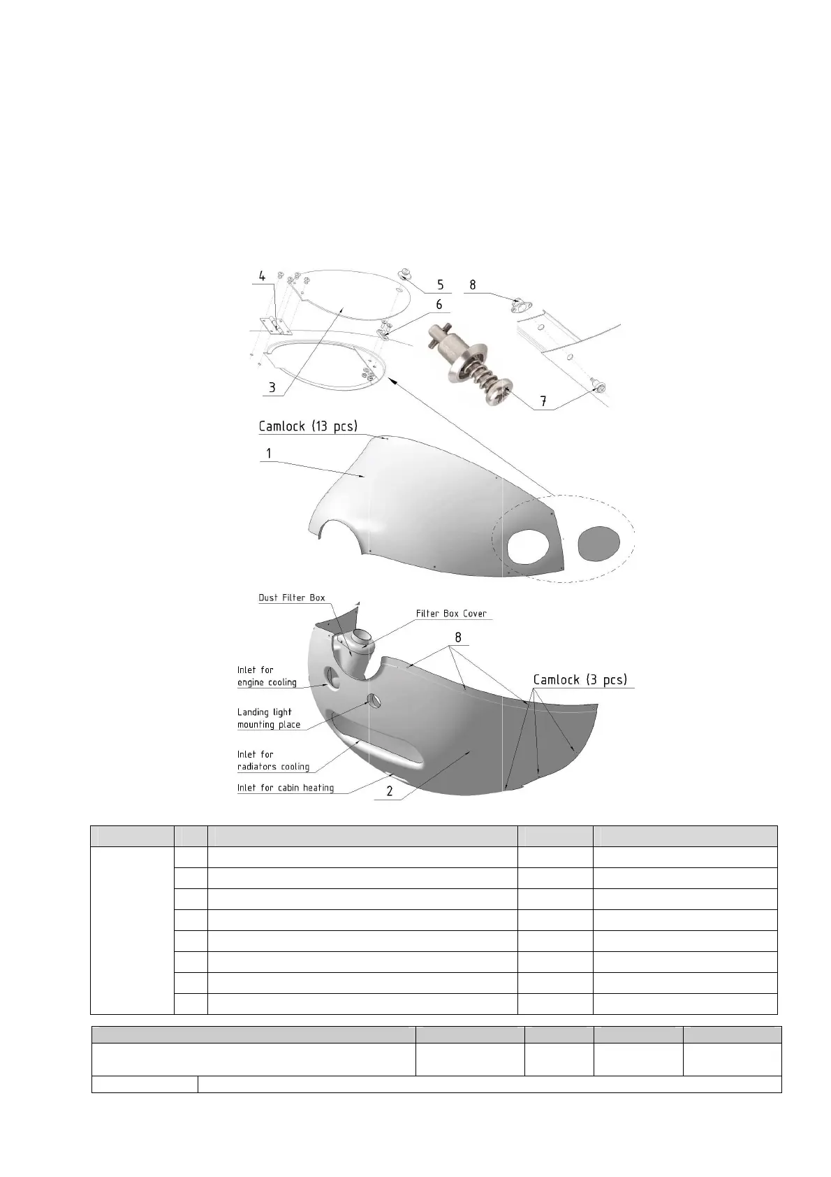 The lower cowling provides air-inlets for engine cooling, air induction, cabin heat and